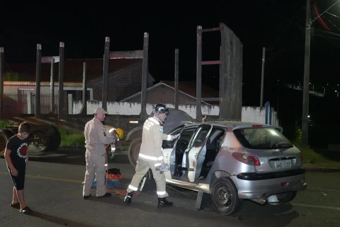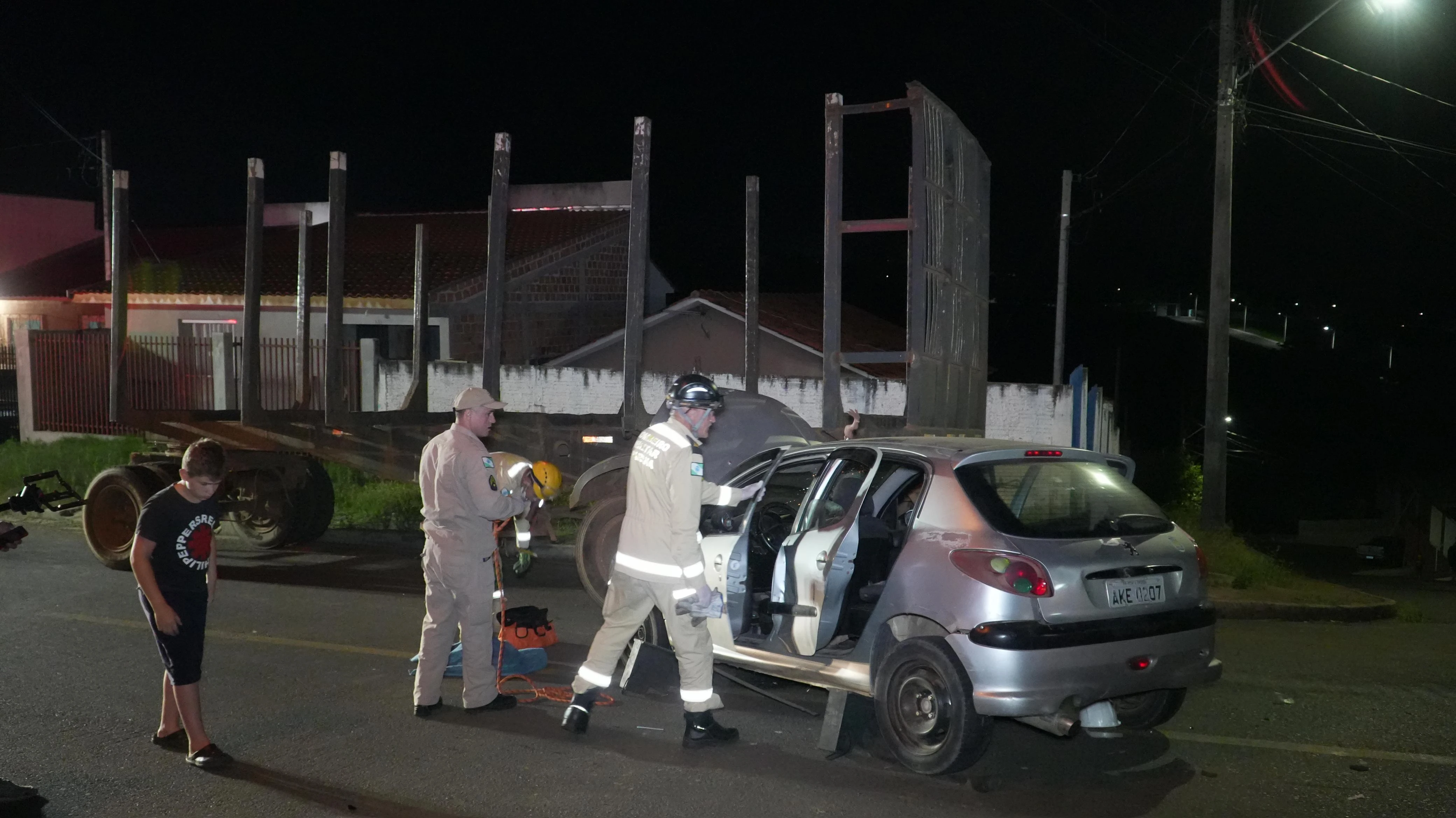 Um grave acidente deixou três pessoas feridas durante a noite do último domingo (21), na rua Bachir Sleiman Fayad, Dom Bosco, em Ponta Grossa. O acidente envolveu um veículo Peugeot e uma carreta que estava estacionada no local.