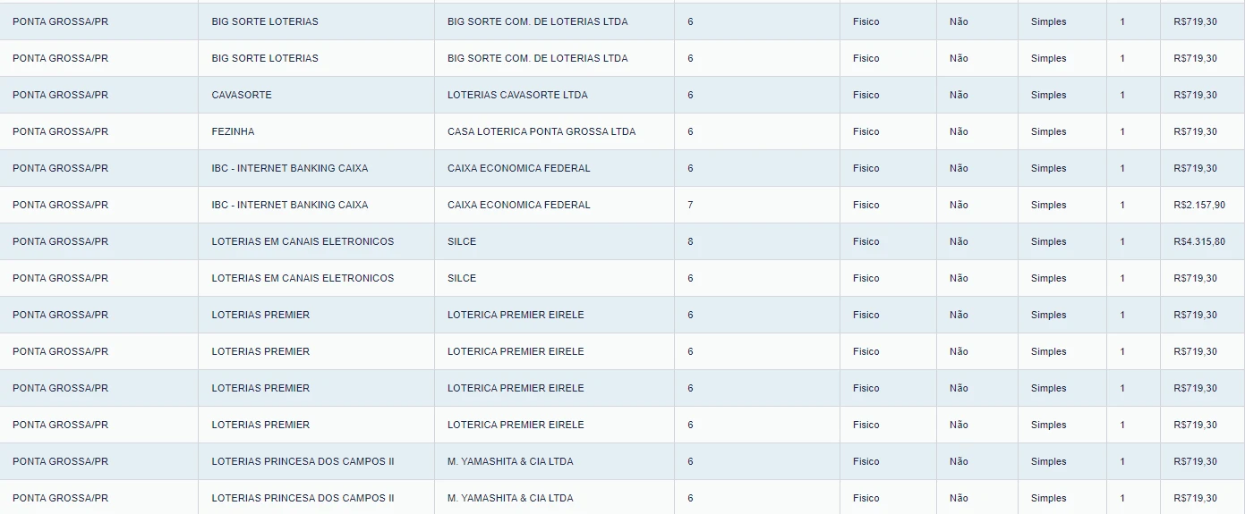 Confira abaixo em quais lotéricas as apostas foram efetuadas: