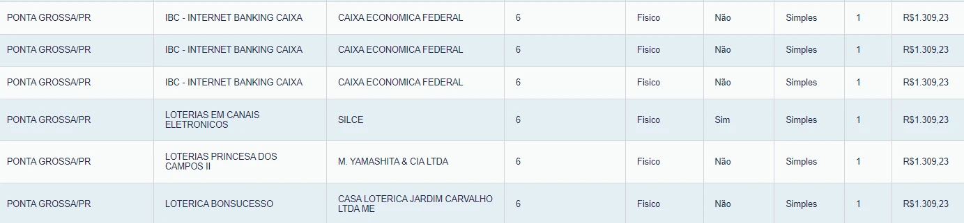 Veja abaixo onde as apostas foram realizadas em Ponta Grossa: