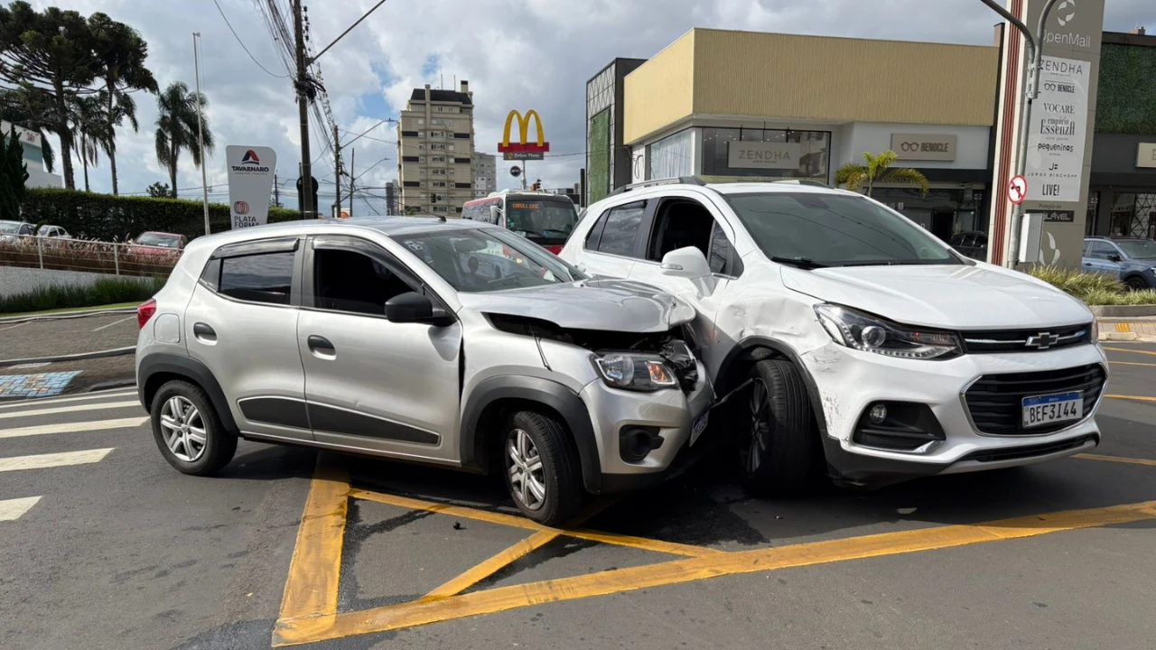 Uma colisão entre dois veículos foi registrada na tarde desta quarta-feira (4) na Vila Estrela, em Ponta Grossa. O acidente aconteceu no cruzamento das ruas Balduíno Taques e Nestor Guimarães e envolveu dois automóveis, sendo um deles conduzido por motorista de aplicativo.