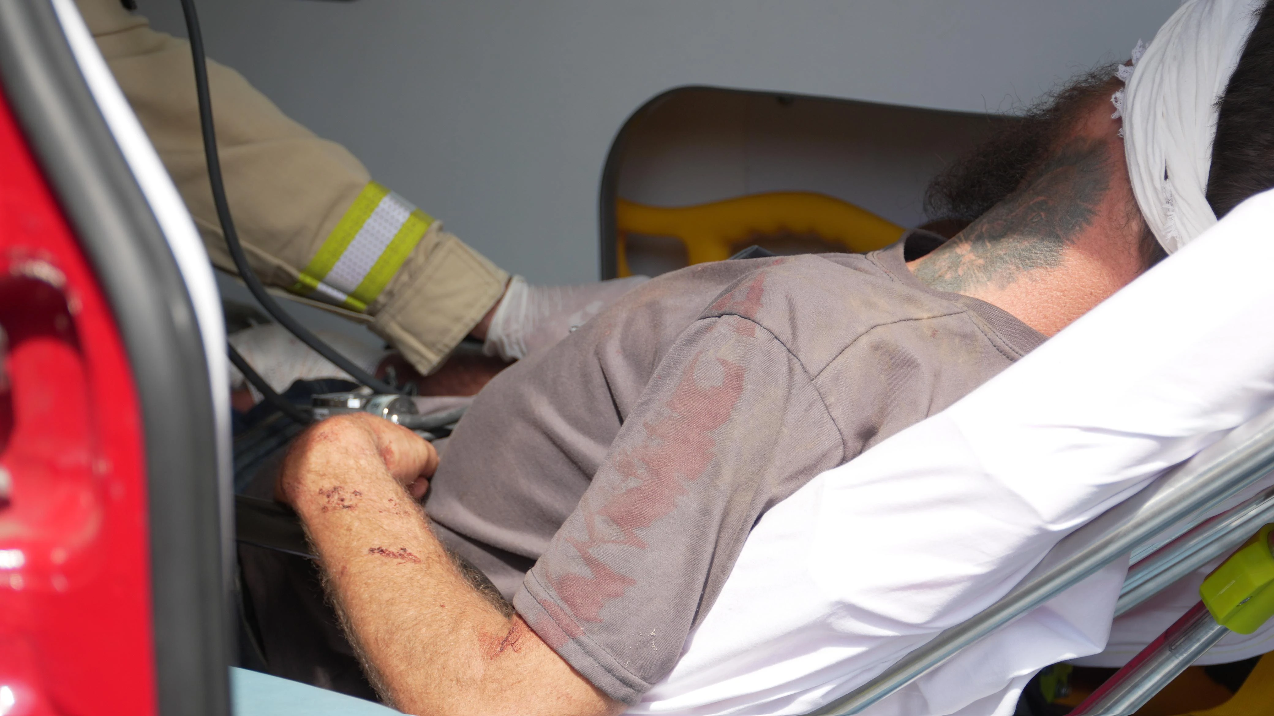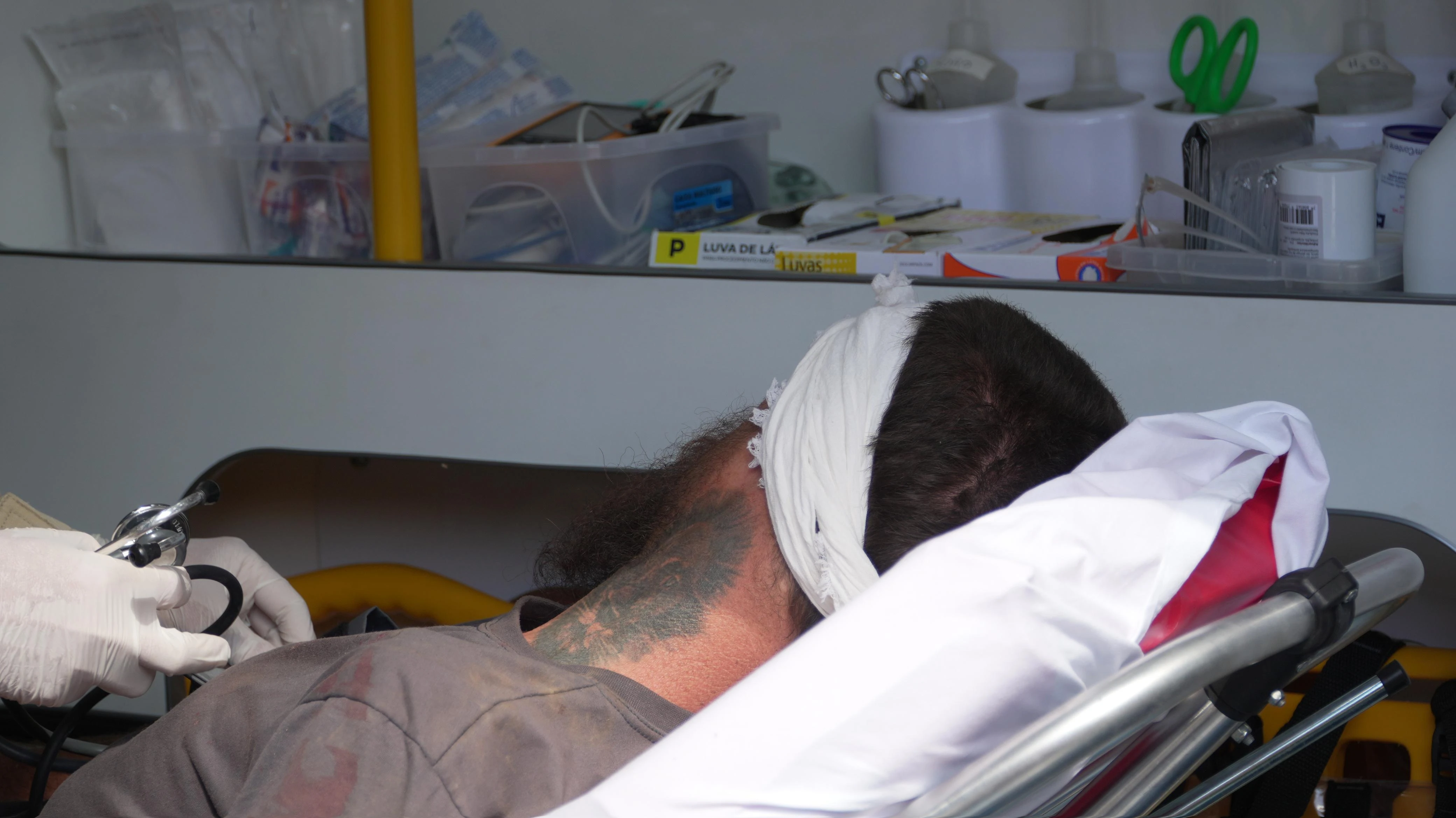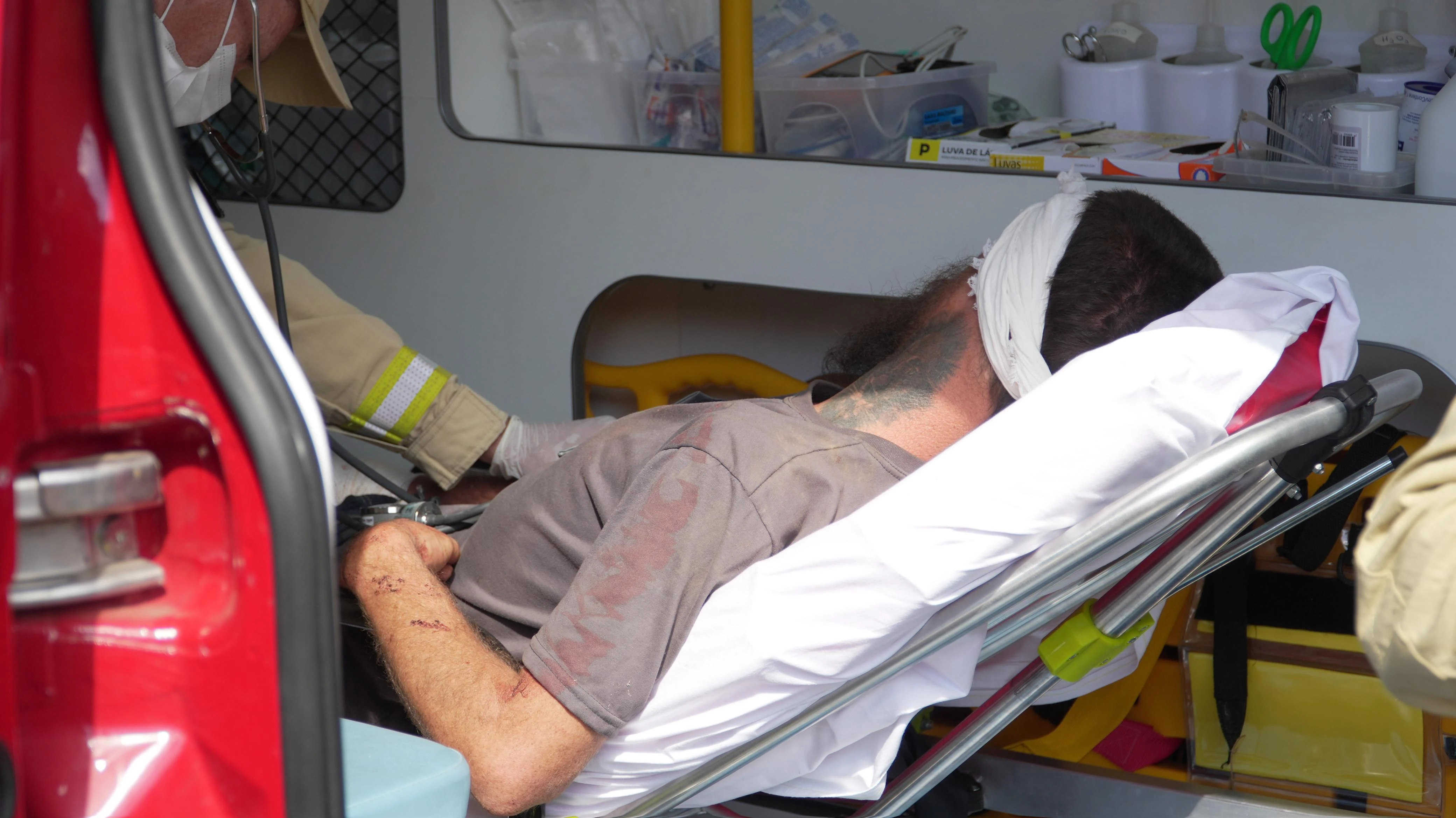 No local, o Corpo de Bombeiros forneceu os primeiros socorros ao homem, que apresentou apenas ferimentos de corte na região da cabeça e dos braços, sem sinal de alguma ferida por arma de fogo. Posteriormente, ele foi encaminhado para a Unidade de Pronto Atendimento Santana, para tratamento médico.