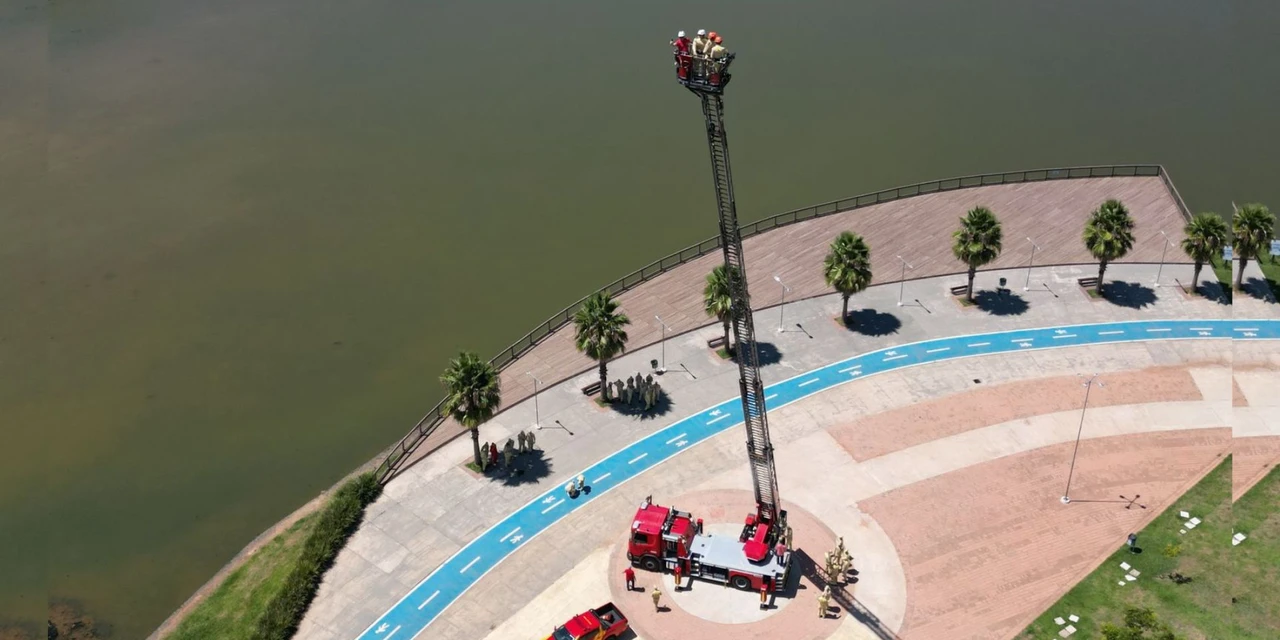 O Corpo de Bombeiros Militar realizou nesta semana, em Ponta Grossa, testes operacionais com um novo caminhão de resgate de alto desempenho. O veículo, equipado com uma plataforma articulada que atinge 42 metros de altura, chamou a atenção de moradores ao ser posicionado no Parque Lago de Olarias e na região central, próximo ao Cine Teatro Ópera.