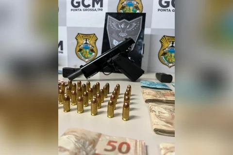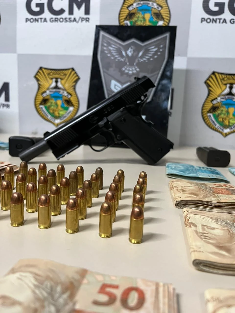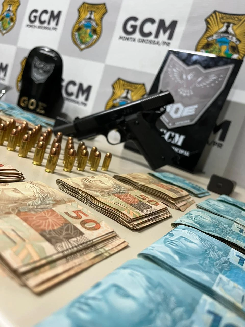 Uma briga de casal resultou em um homem preso por porte ilegal de arma de fogo durante o início da madrugada desta sexta-feira (26) no bairro Boa Vista, em Ponta Grossa. A prisão foi realizada por uma equipe do Grupamento de Operações Especiais (GOE) da Guarda Civil Municipal (GCM), que apreendeu a arma e R$ 50 mil durante a ação