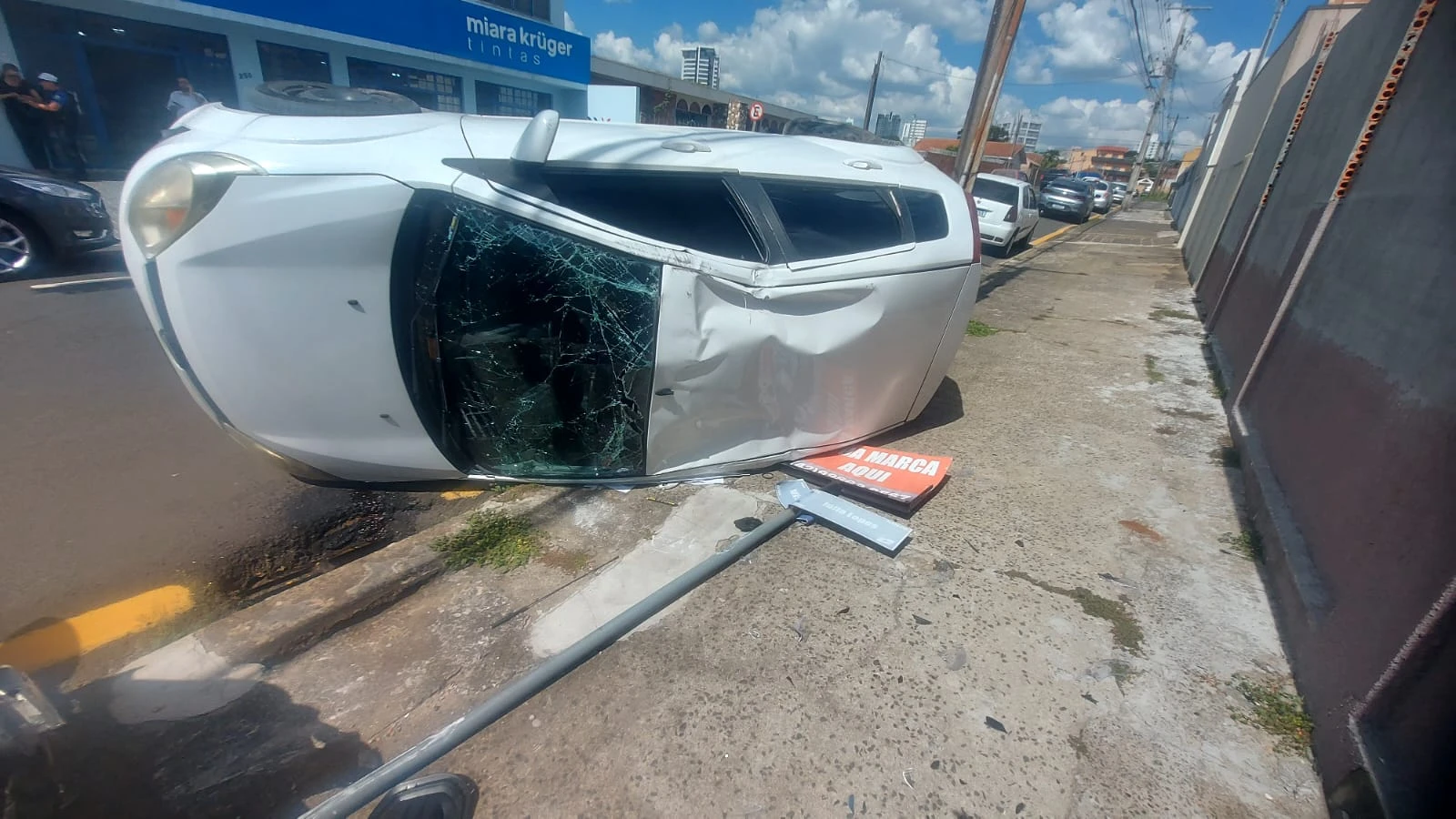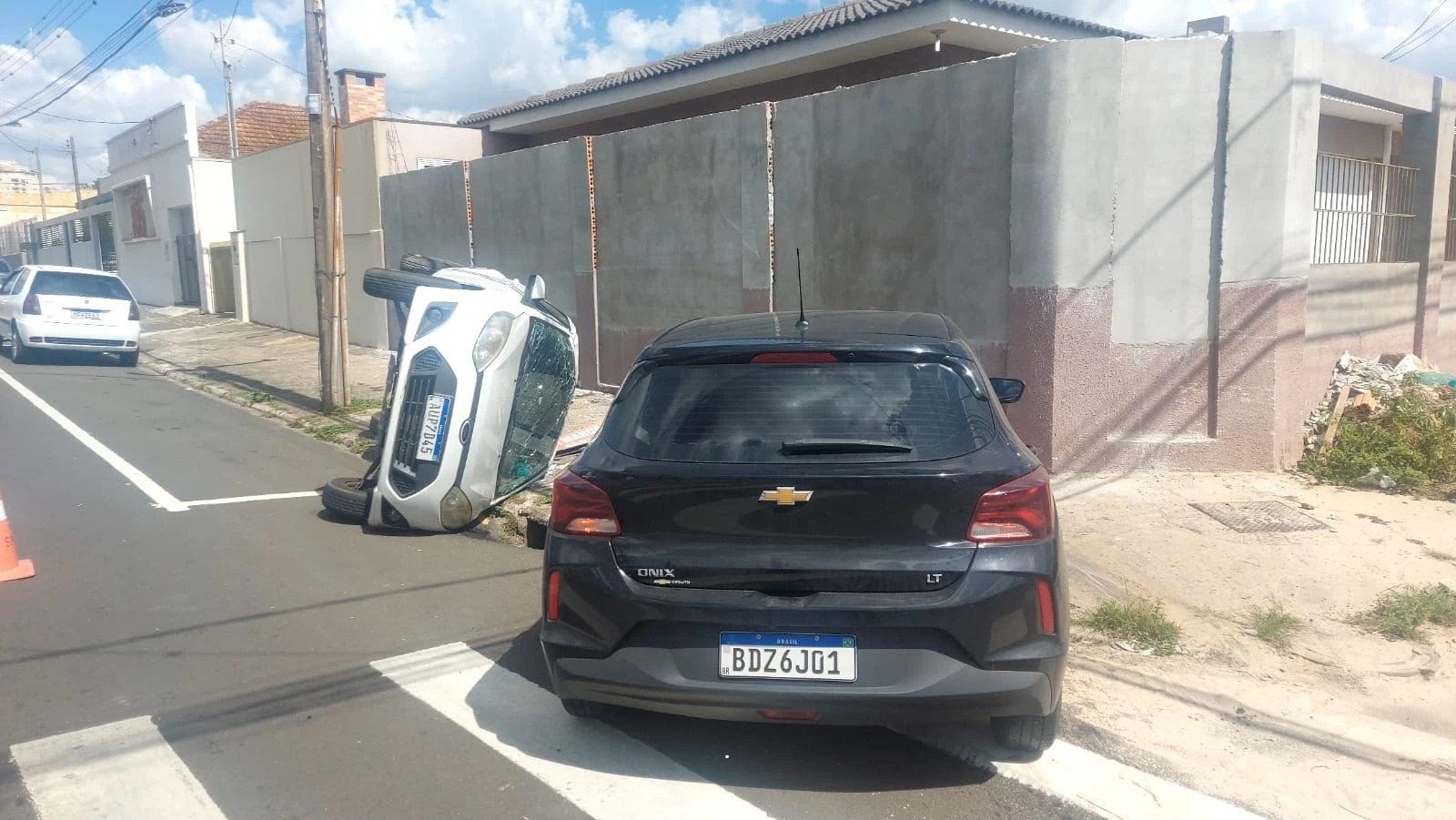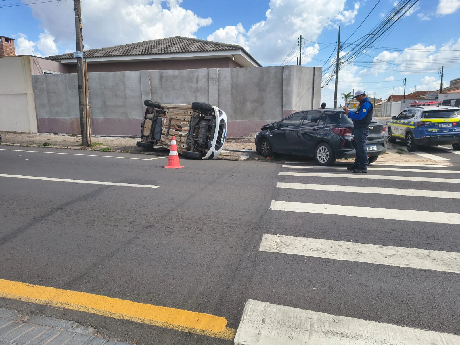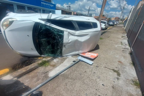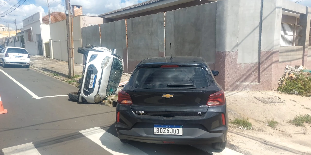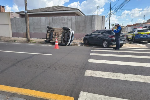 Uma colisão seguida de capotamento foi registrada na tarde desta quarta-feira (04), no bairro Nova Rússia, em Ponta Grossa. O acidente ocorreu no cruzamento entre as ruas Visconde de Sinimbú e Júlia Lopes, onde supostamente um dos carros teria furado o sinal da via.
