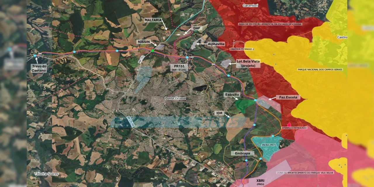 A concessionária CCR PRVias , em conjunto com a empresa Planservi Engenharia , apresentou o mapa geral com as alternativas de traçado para a aguardada obra do Contorno de Ponta Grossa. O documento, datado de 2 de março de 2026 , revela os detalhes do "Traçado Proposto - Motiva" e de sua respectiva variante , delineando o futuro da infraestrutura viária do município.