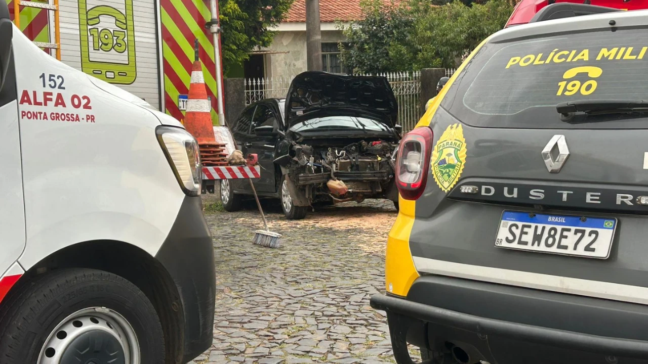 Uma colisão foi registrada na tarde desta quarta-feira (17) na Vila Marina, em Uvaranas. O acidente ocorreu no cruzamento das ruas João Ribeiro e Barão de Ramalho, quando um Chevrolet Onix preto avançou a preferencial e atingiu um Fiat Strada vermelho.