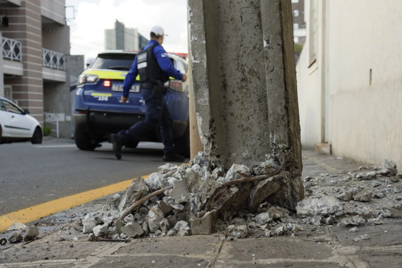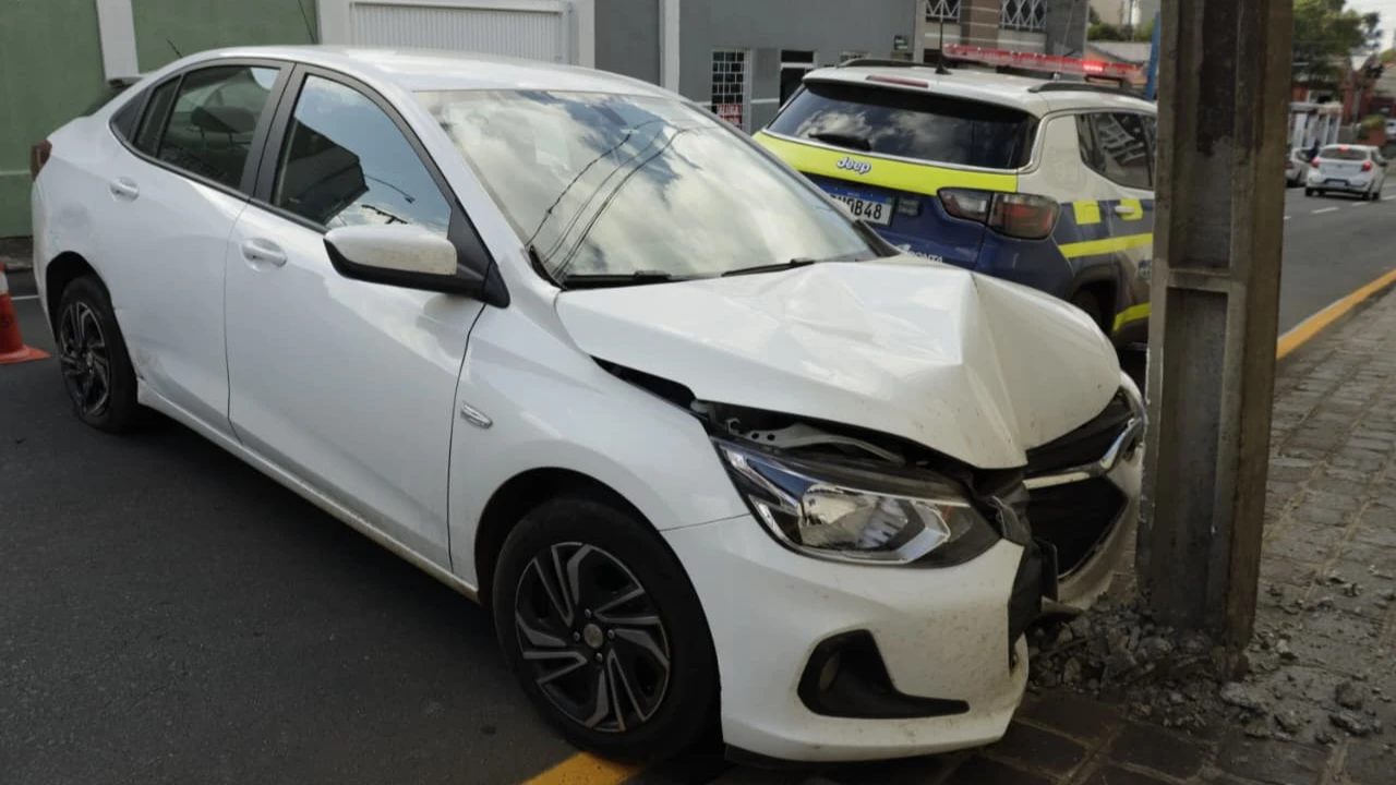 Com a força da colisão, o Onix rodou na pista e atingiu um poste. A estrutura não chegou a cair, mas ficou quebrada e danificada, exigindo acompanhamento da concessionária responsável pela rede elétrica.
