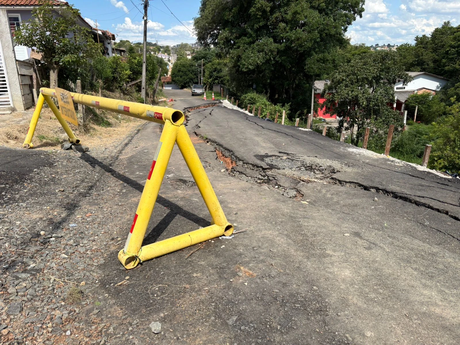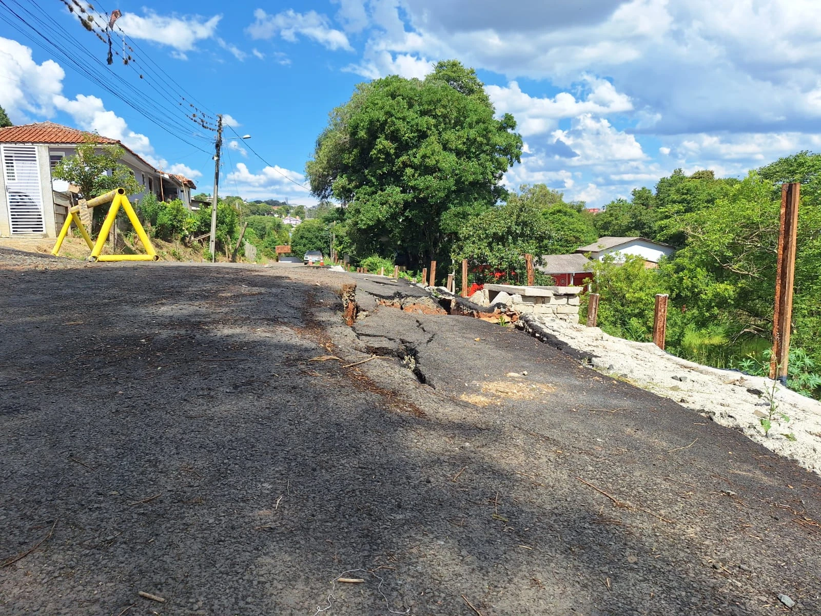 Segundo os relatos, a erosão tem se ampliado e comprometido a estrutura do solo. Casas próximas ao ponto onde o asfalto cedeu apresentam risco, e moradores temem novos deslizamentos. Em alguns casos, houve queda de muros, o que levou à retirada de residentes por medida de segurança.