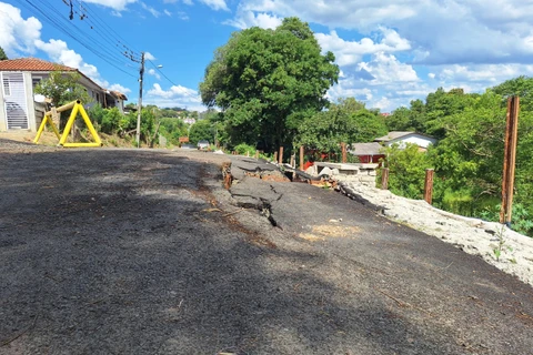 Moradores da Rua Emílio Voigt, no bairro Uvaranas, em Ponta Grossa, têm relatado preocupação com as condições da via. O asfalto estaria cedendo em um trecho da rua, formando uma cratera que avança e coloca em risco imóveis próximos. A situação tem gerado apreensão entre as famílias que residem nas imediações da área afetada.