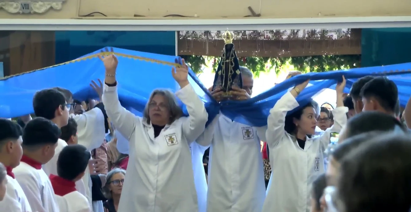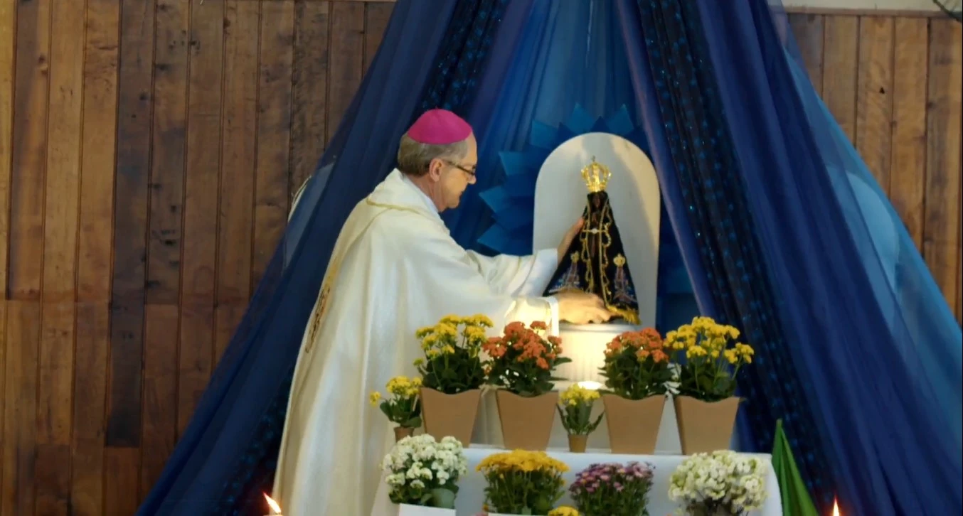Fiéis lotaram o Santuário Diocesano de Nossa Senhora Aparecida, na Paróquia São Sebastião, no bairro Nova Rússia, para a celebração da Padroeira do Brasil, na tarde deste domingo (12). Tradicionalmente, uma procissão percorre a Avenida Dom Pedro II, desde o Hospital Bom Jesus até o Santuário Diocesano, onde é celebrada uma missa. Choveu bastante no horário previsto para a procissão, mas a missa, presidida pelo bispo Dom Bruno Elizeu Versari foi mantida.