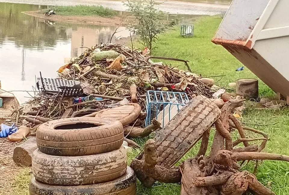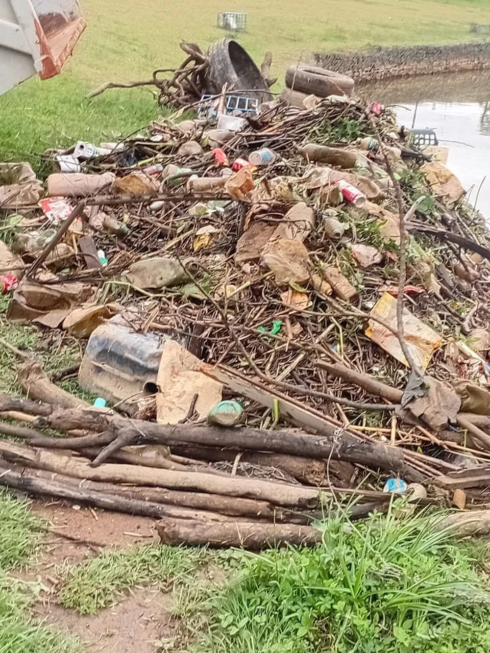 A prefeita Elizabeth Schmidt publicou, nas redes sociais, fotos da quantidade de lixo retirada das águas do Lago de Olarias nesta segunda-feira (13). Foram encontrados materiais como pneus, garrafas e ferragens submersos no local.