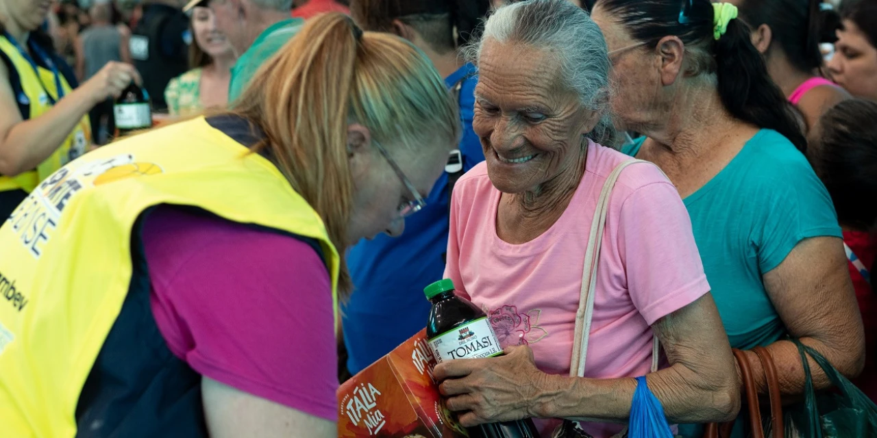 Cada cesta foi composta por 25 produtos, reunindo itens essenciais como arroz, feijão, macarrão, óleo e farinha de trigo, além de alimentos tradicionais das celebrações de Natal, como pêssego em calda, leite condensado, balas sortidas e chocotone.