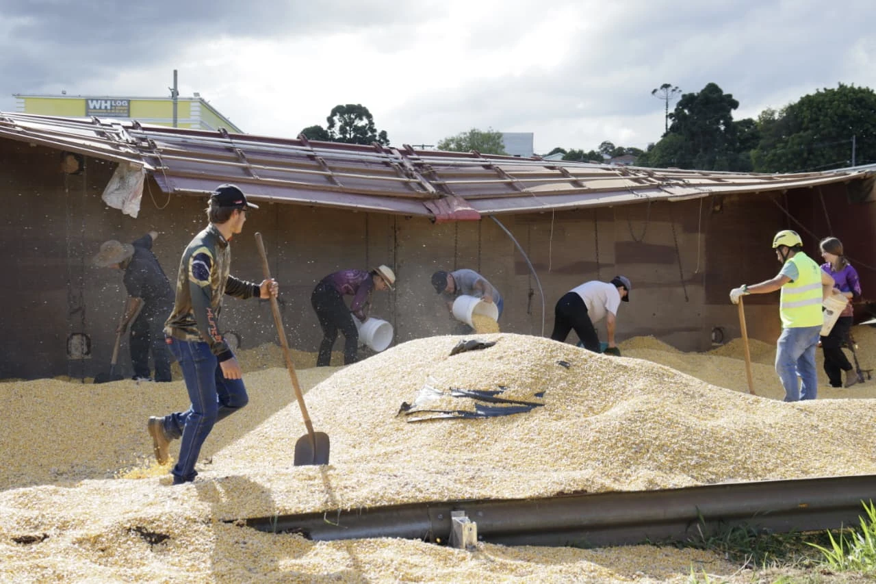A família, que atua na agricultura familiar e não possuía seguro para a carga, trouxe tratores e outro caminhão diretamente da lavoura para o local do acidente. Em um esforço intensivo, eles conseguiram recolher todo o milho espalhado na pista, evitando o prejuízo financeiro total que o descarte causaria.