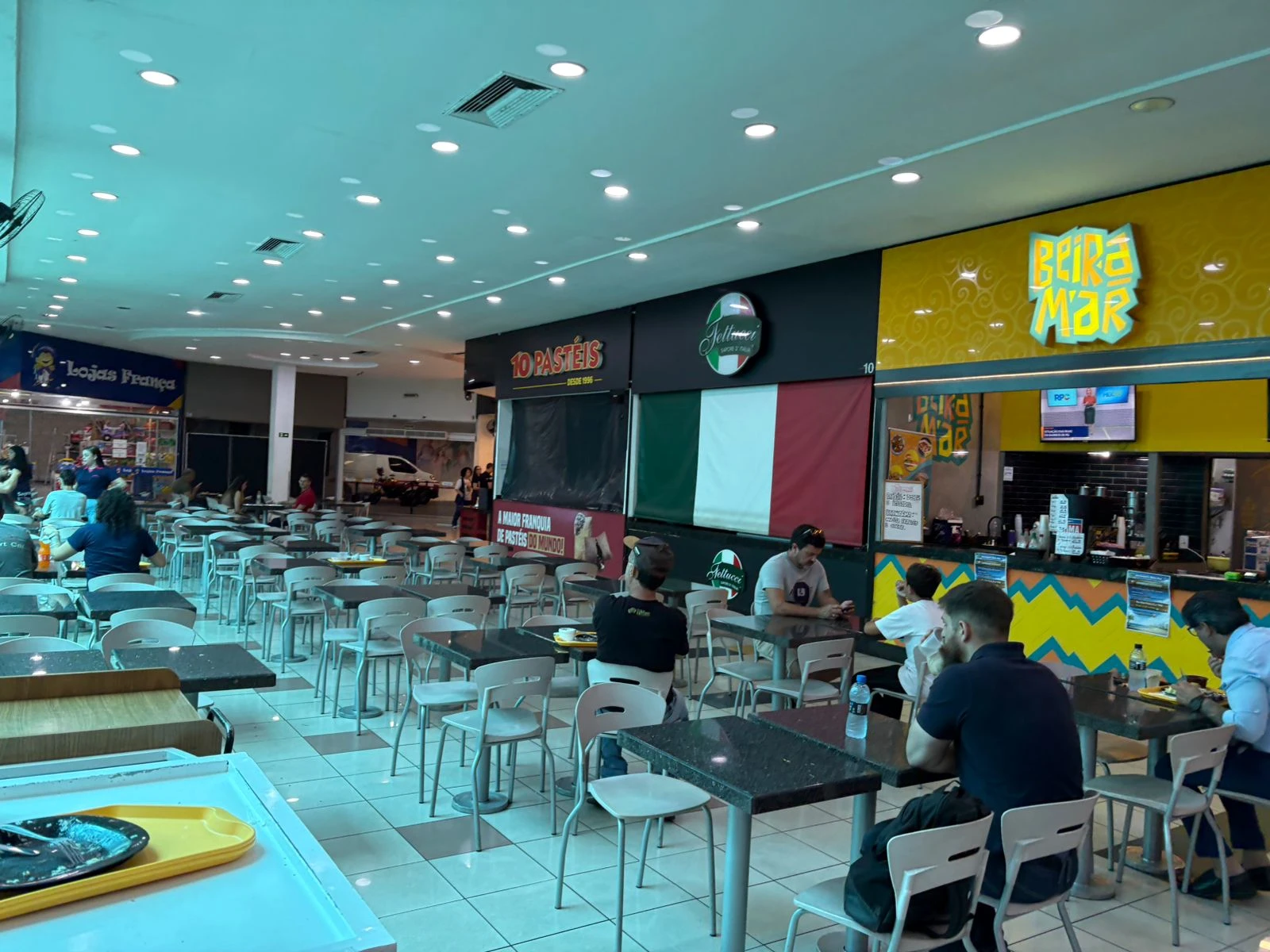 Atualmente, apenas a praça de alimentação concentra um volume considerável de visitantes, enquanto o restante do shopping permanece esvaziado.