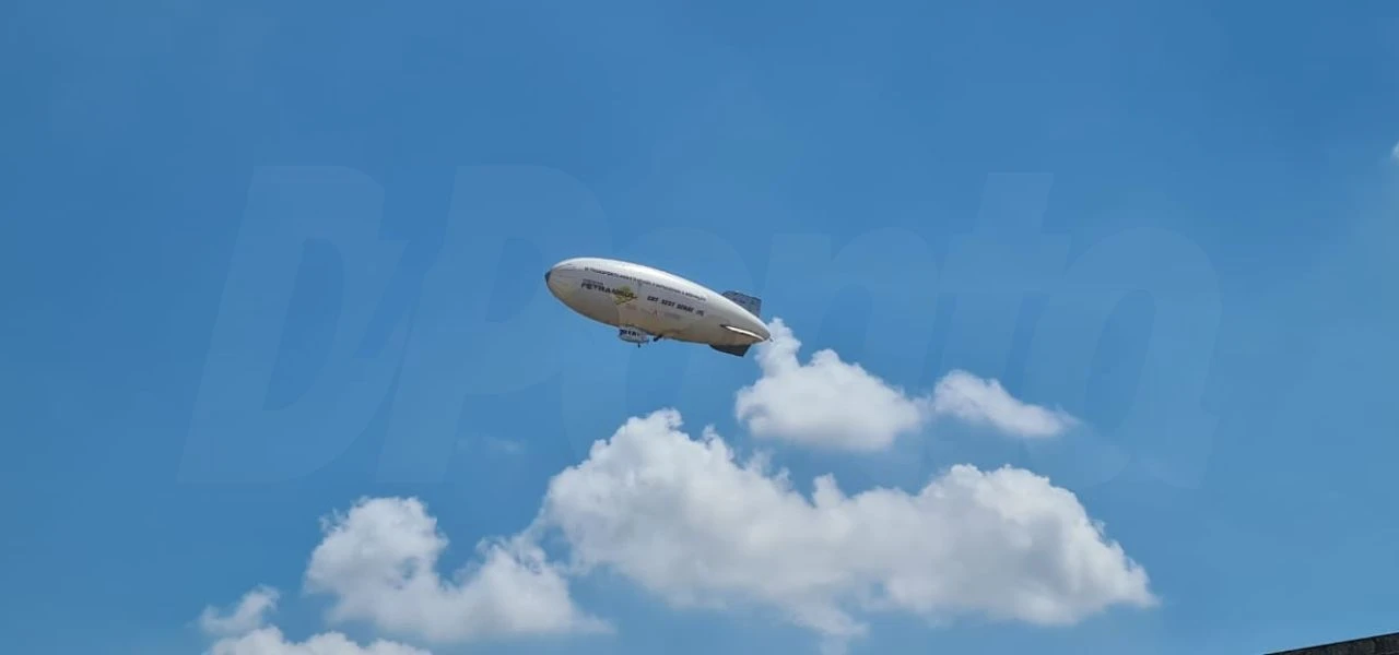 Um dirigível (ou Zeppelin) voando nos céus de Ponta Grossa e Carambeí chamou atenção dos moradores nesta terça-feira, 21. O objeto voou entre 12h e 13h10 e gerou curiosidade nas redes sociais. Nas calçadas e nos prédios, o que não faltou foram curiosos com as câmeras apontadas para o 'balão voador'.