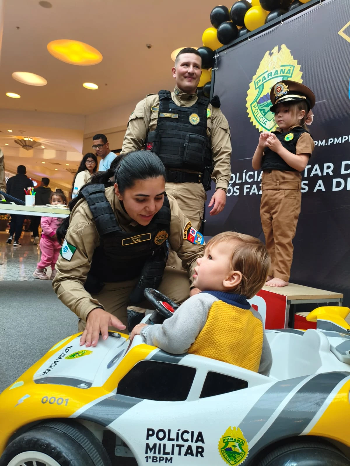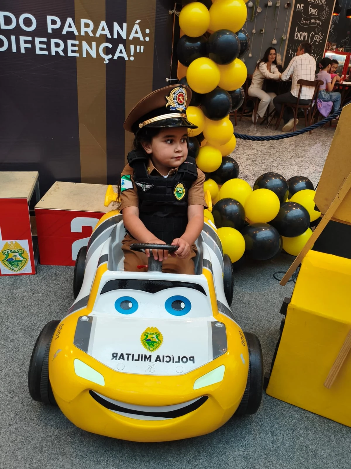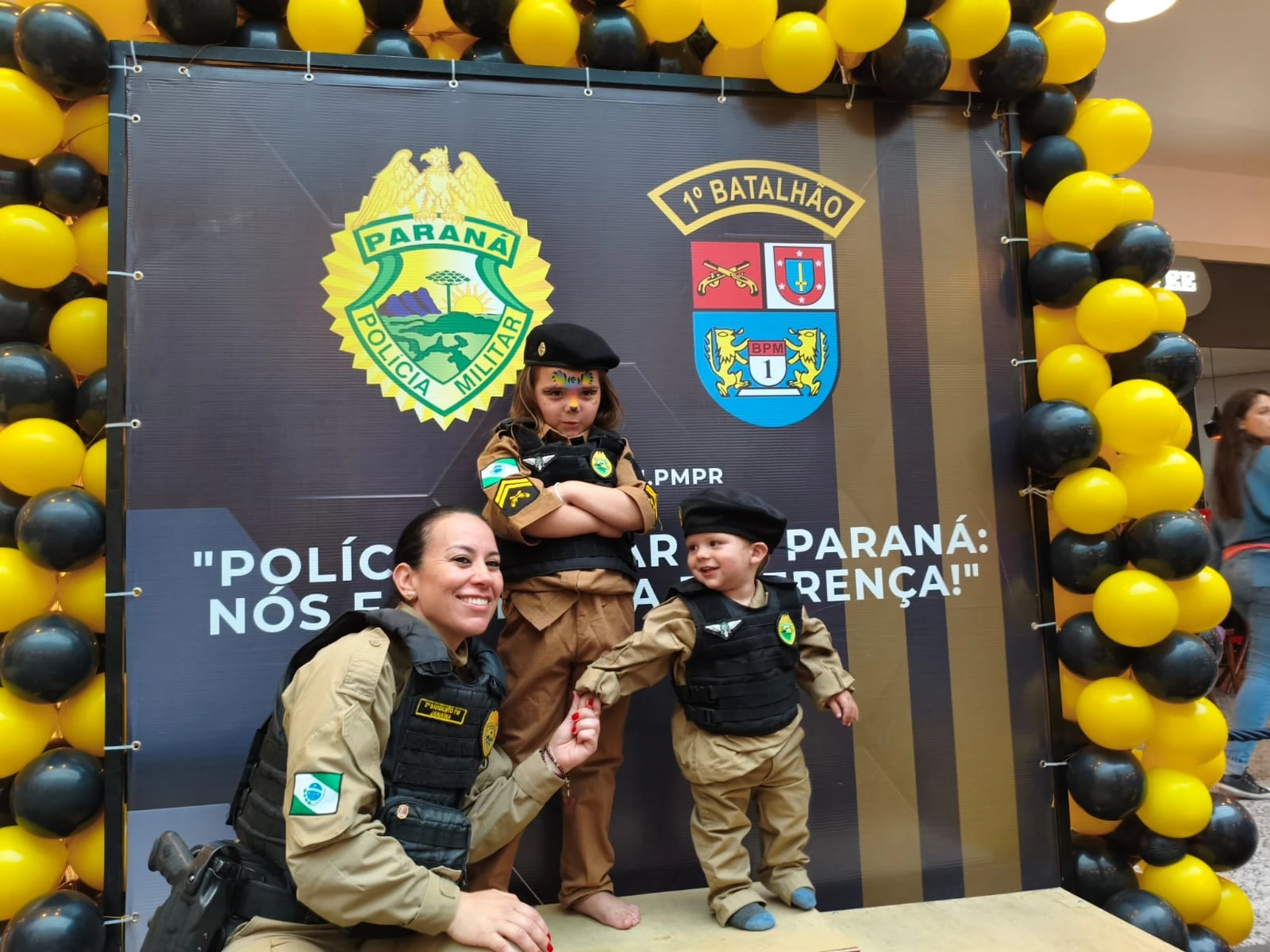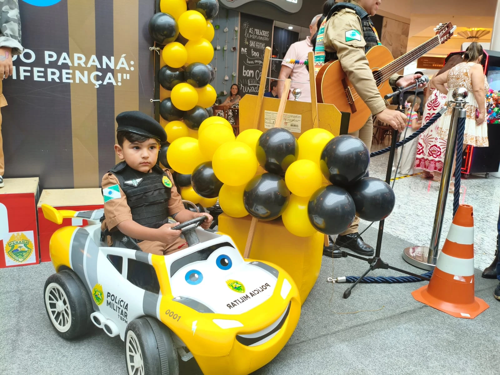 A Polícia Militar (PM) comemorou o Dia das Crianças com uma ação especial no último domingo (12), no Shopping Palladium, em Ponta Grossa. Centenas de pequenos e pequenas passaram pelo local e tiveram a oportunidade de prestigiar apresentações musicais, conhecer equipamentos utilizados pela corporação, fazer pintura facial, além de registrar fotos.