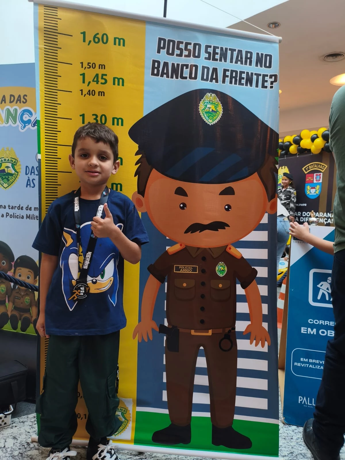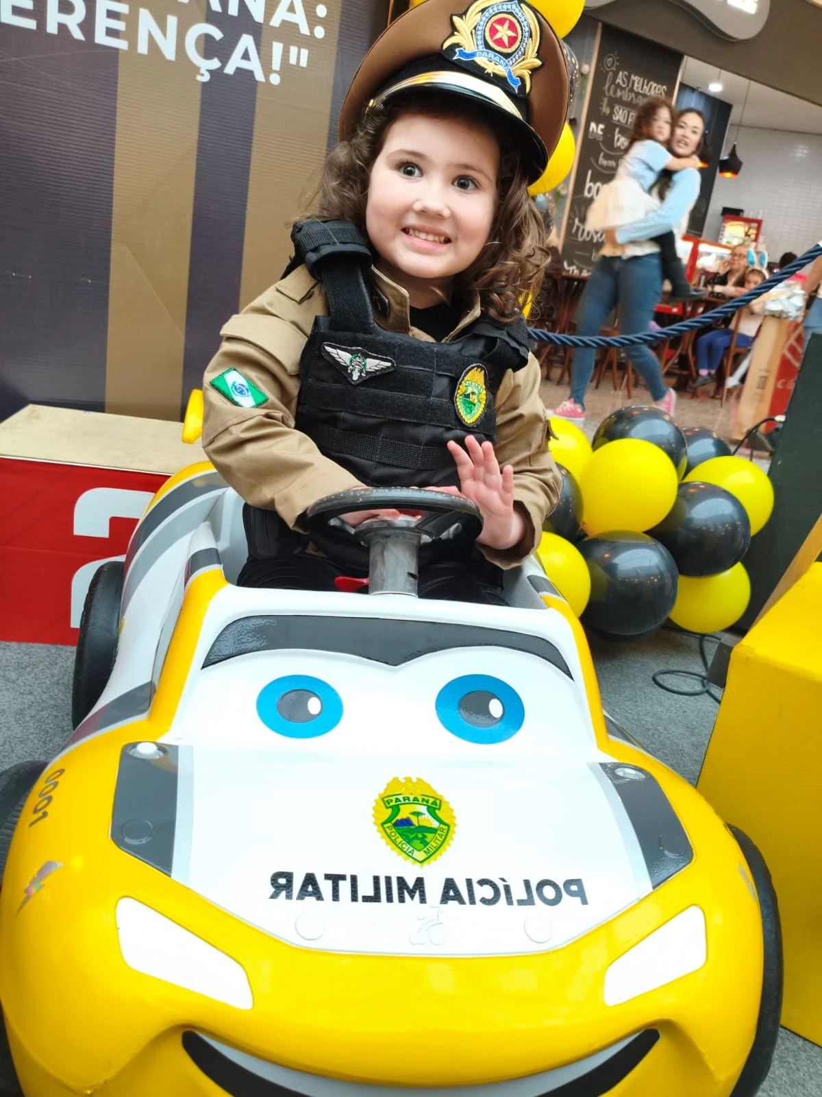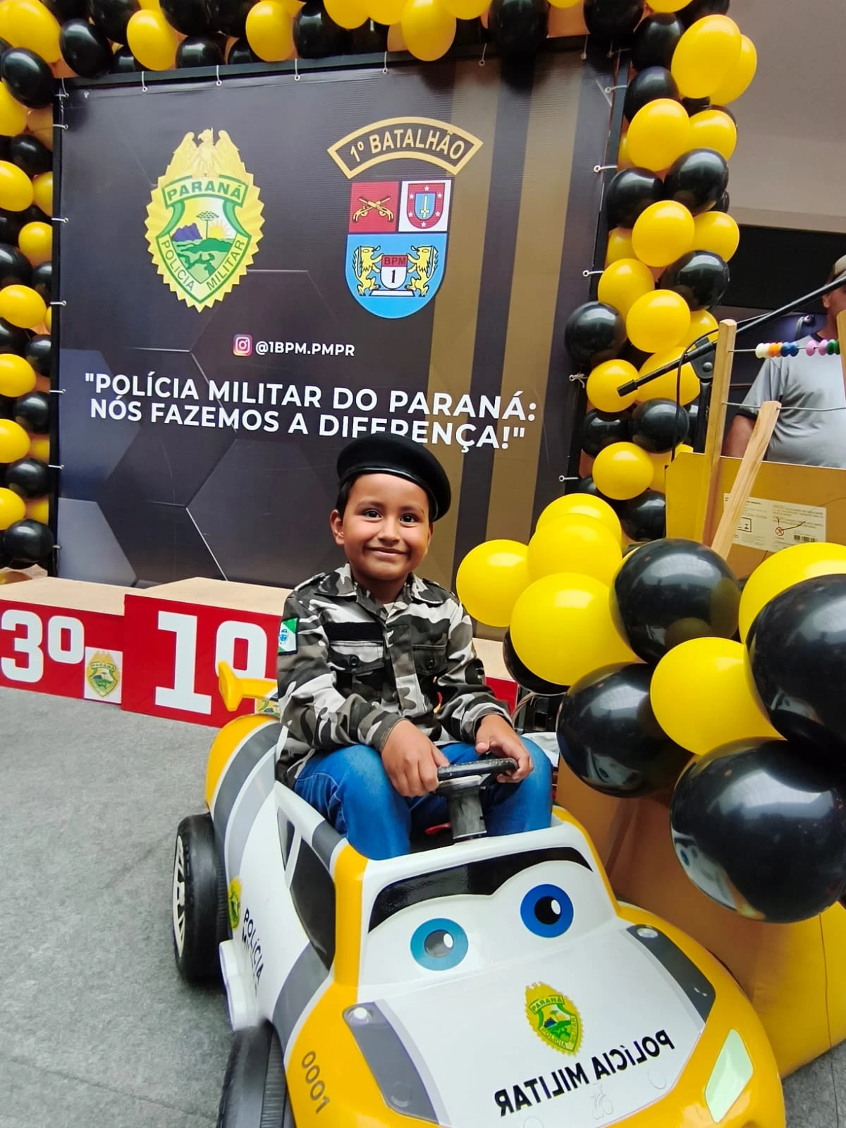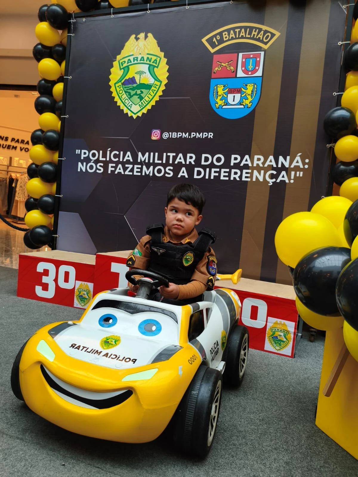 A Polícia Militar (PM) comemorou o Dia das Crianças com uma ação especial no último domingo (12), no Shopping Palladium, em Ponta Grossa. Centenas de pequenos e pequenas passaram pelo local e tiveram a oportunidade de prestigiar apresentações musicais, conhecer equipamentos utilizados pela corporação, fazer pintura facial, além de registrar fotos.