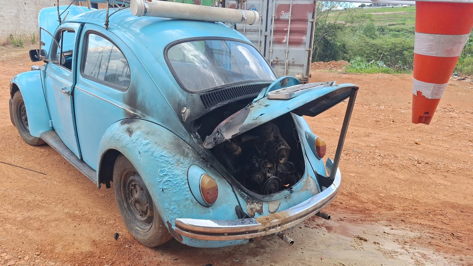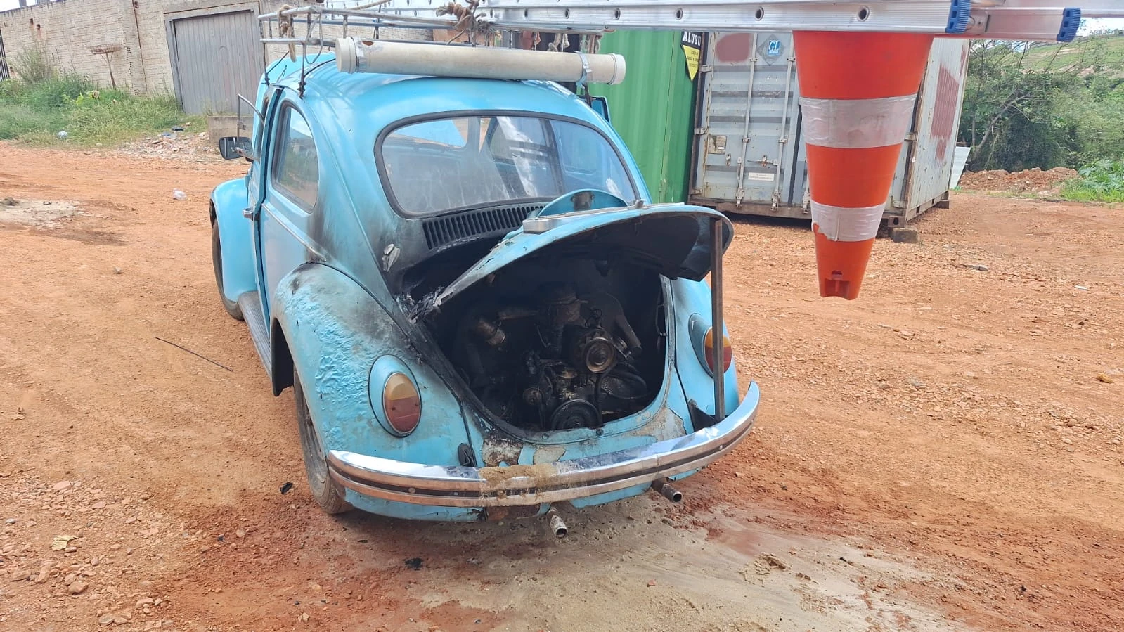 Um Fusca azul pegou fogo na tarde desta sexta-feira (26) na rua Nelson Pereira Dias Júnior, no bairro Olarias. O incêndio em veículo não deixou vítimas, mas causou danos significativos ao automóvel.