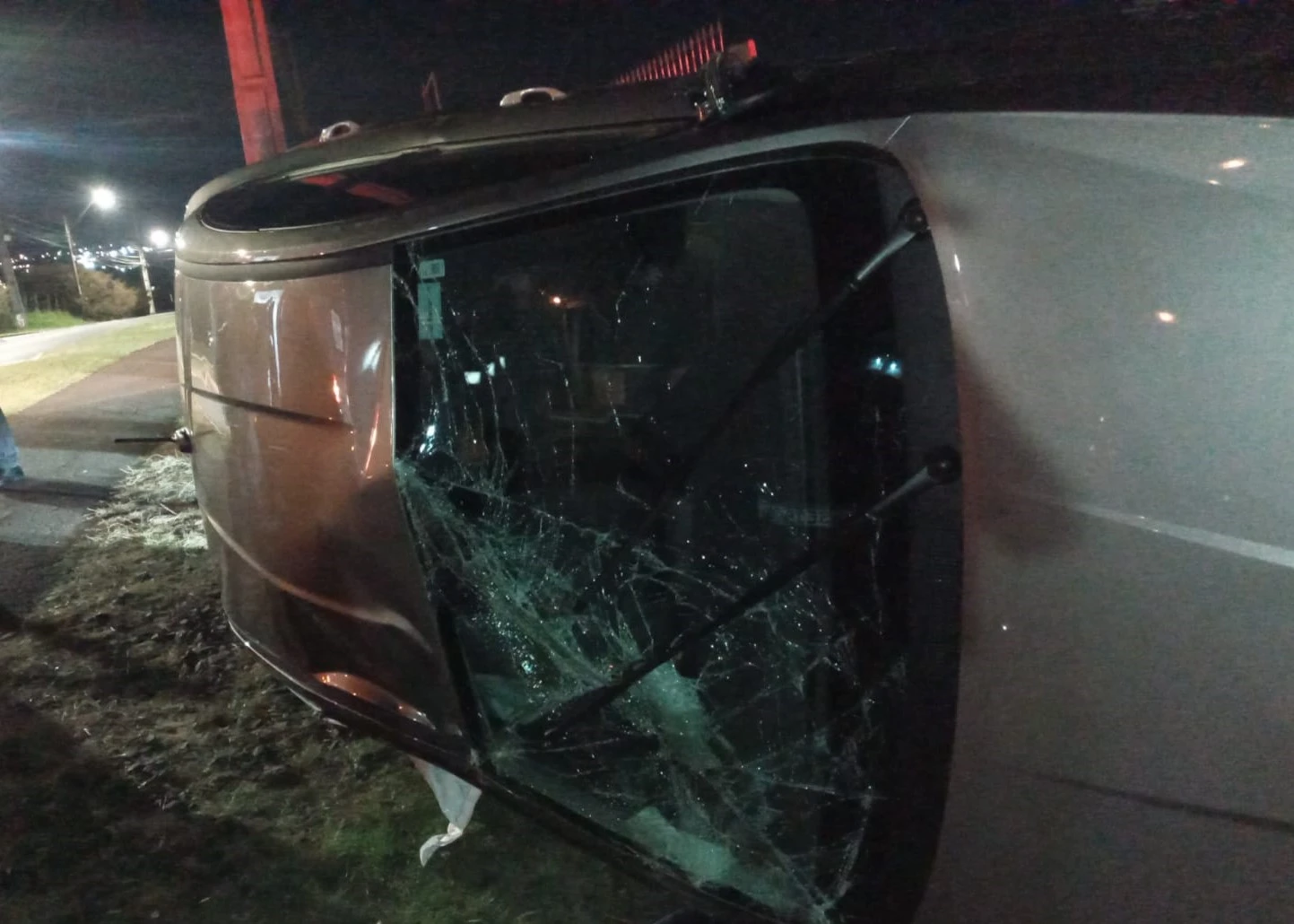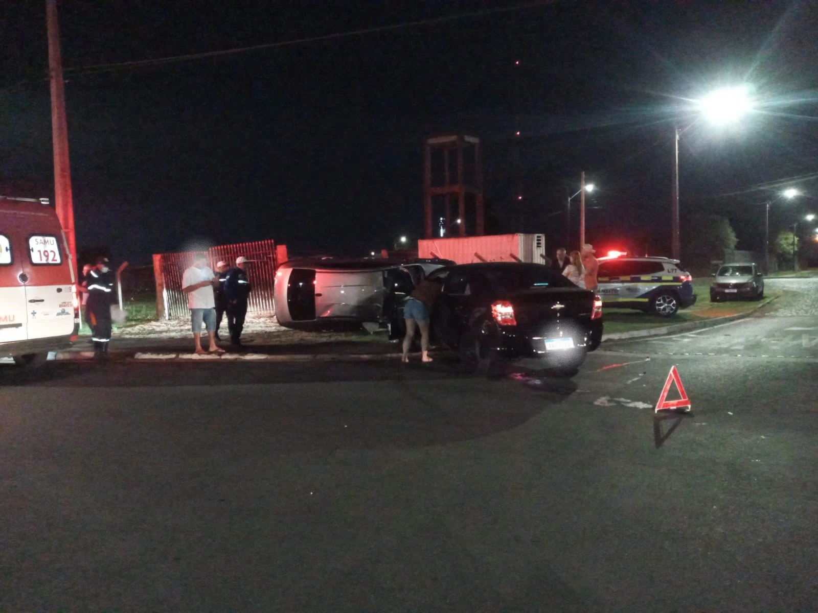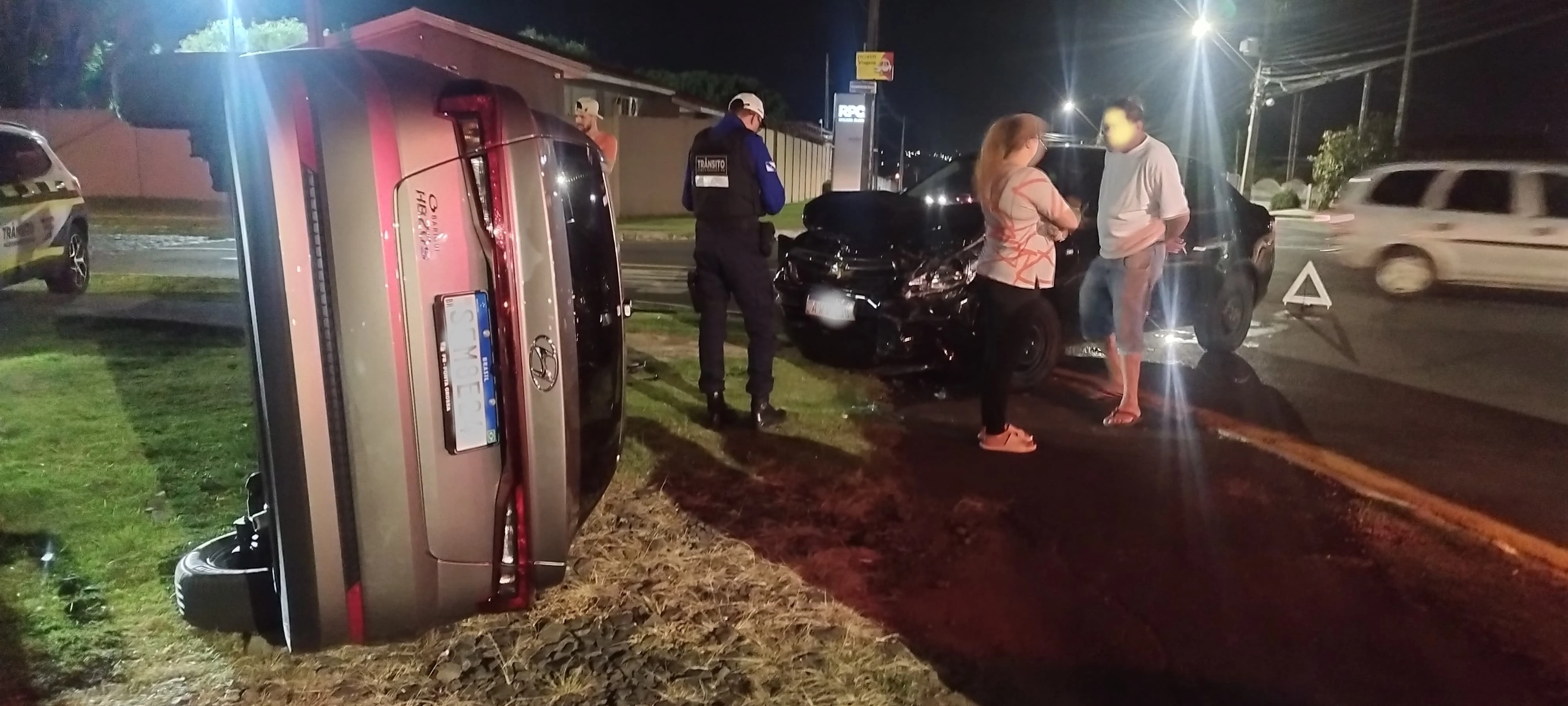 Um automóvel Hyundai HB20 tombou na rotatória ao final da Rua Cel. Alcebíades de Miranda, no limite do Parque Nossa Senhora das Graças com o Jardim Esplanada, no bairro Boa Vista, por volta das 23h de sábado (4). Conforme informações coletadas no local, o HB20 subiu a Cel. Alcebíades de Miranda, sentido Centro-bairro e, ao contornar a rotatória, foi atingido por um veículo Chevrolet Cobalt, que vinha pela Rua João Batista França e Silva e entrou na rotatória.