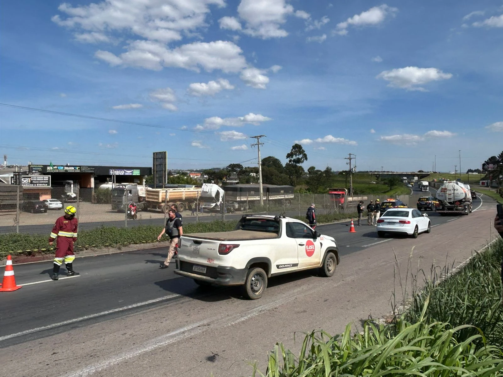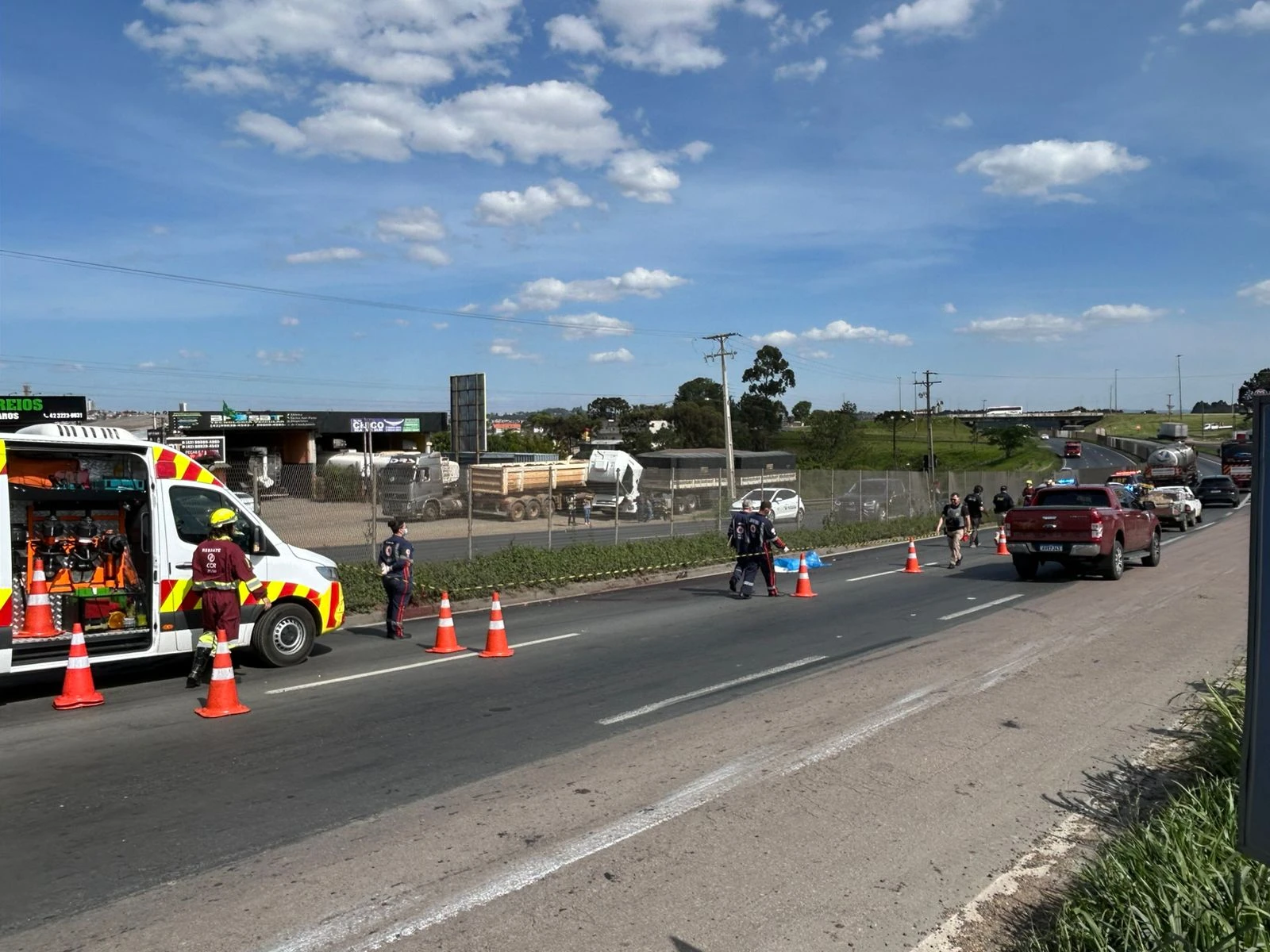 Equipes de resgate estão em atendimento à ocorrência. De acordo com as primeiras informações, a pista da esquerda foi interditada para o trabalho das equipes, e o tráfego segue apenas pela faixa da direita.