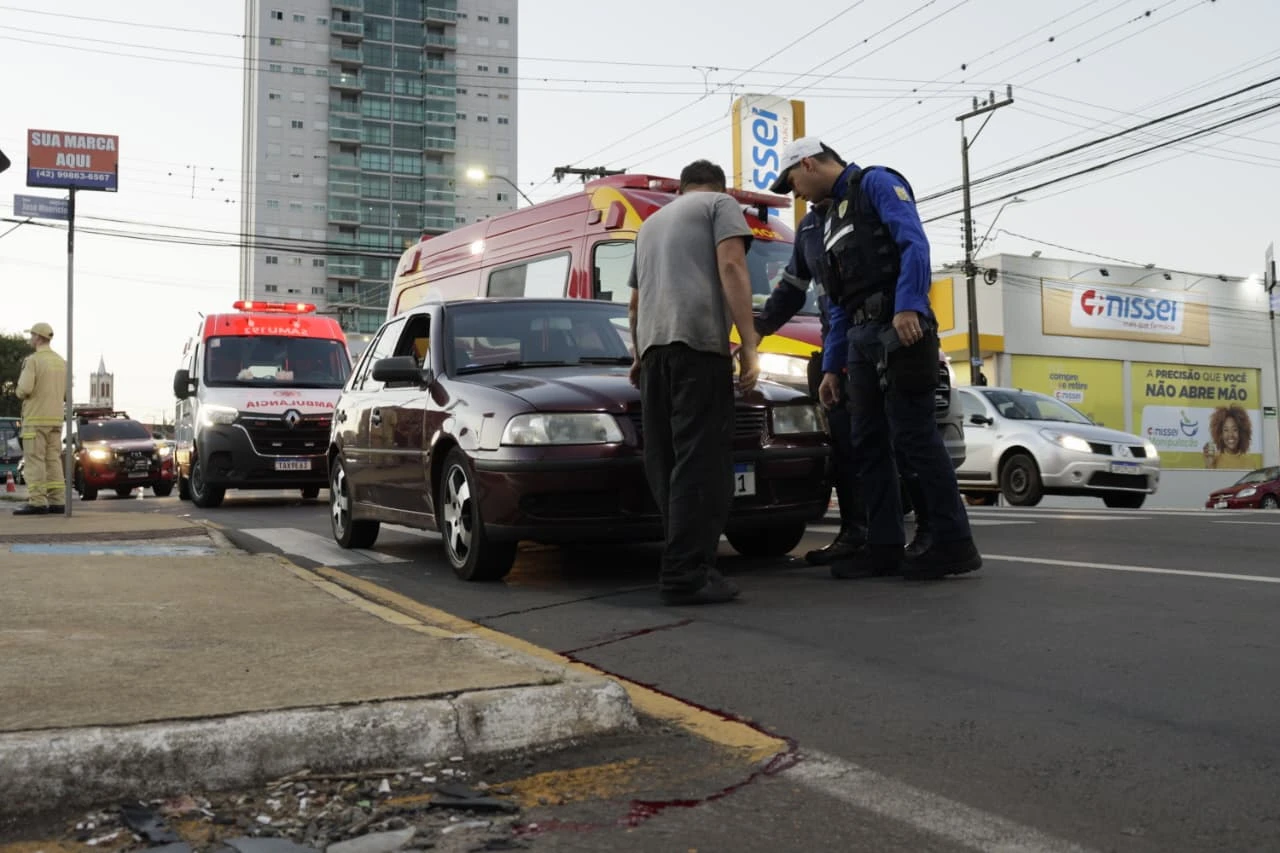 Um idoso de 74 anos foi atropelado na tarde desta quinta-feira na Avenida Carlos Cavalcante, em Ponta Grossa, nas proximidades do supermercado Condor. O motorista de um Volkswagen Gol relatou que seguia pela faixa da direita, vindo da Rua Conselheiro Barradas em direção ao bairro, enquanto outros veículos trafegavam pela faixa da esquerda.