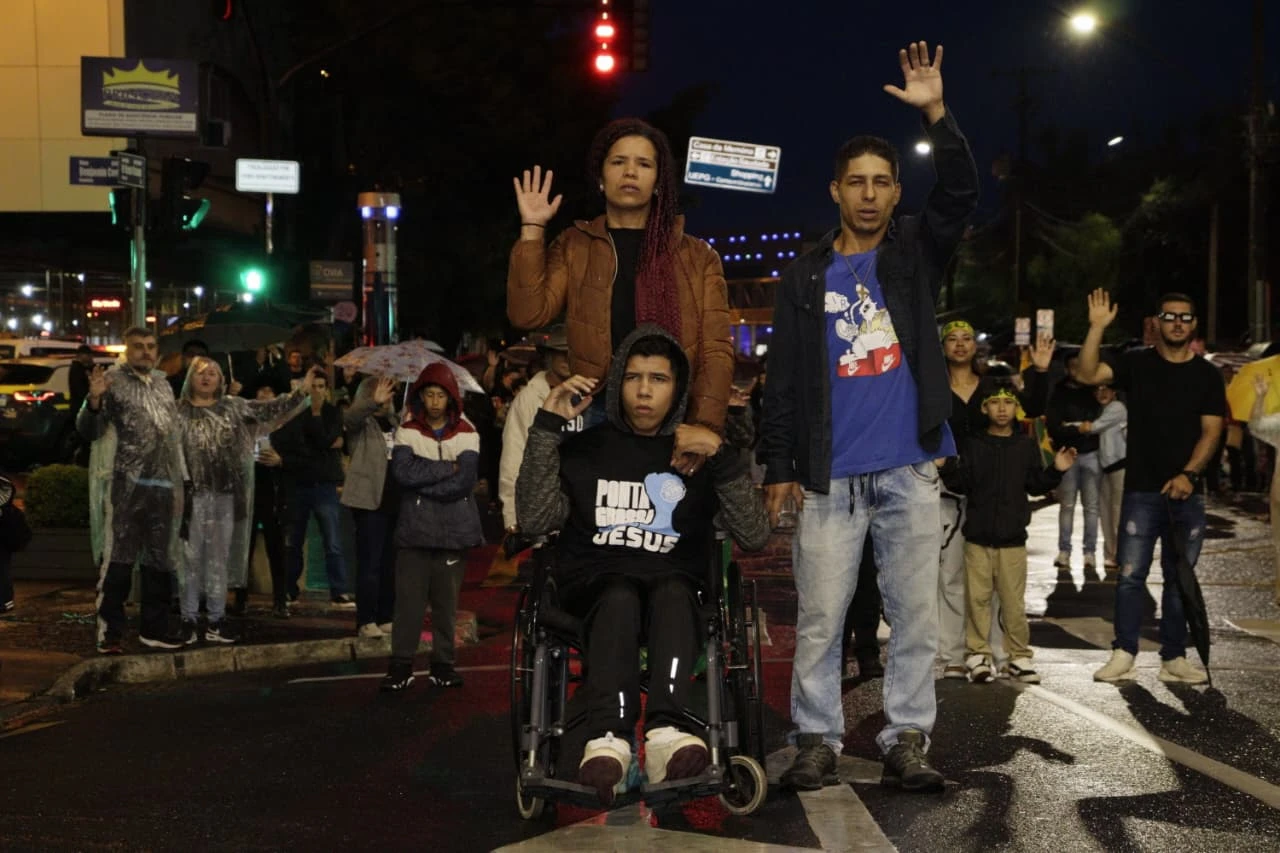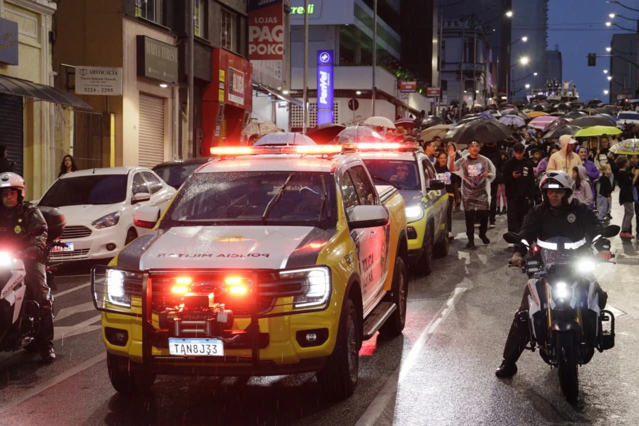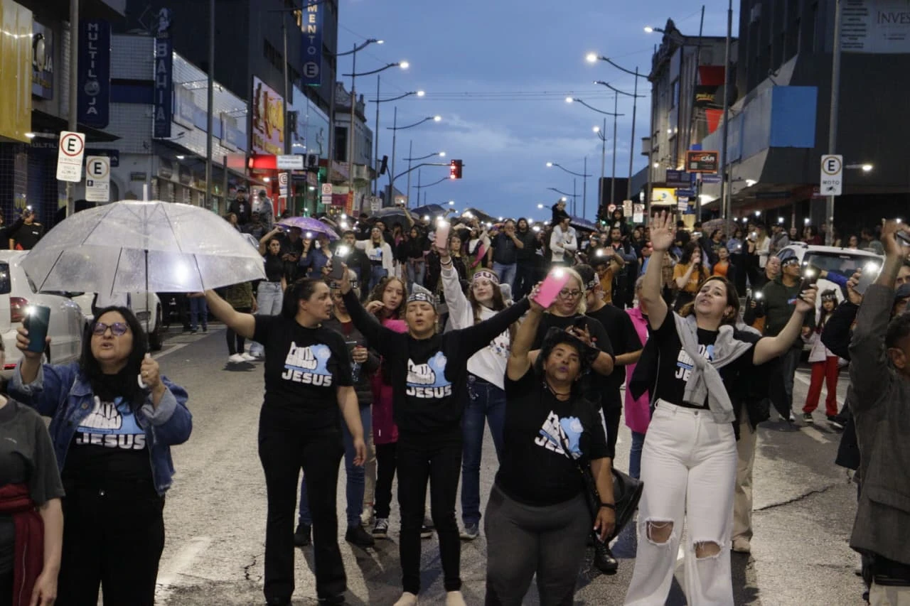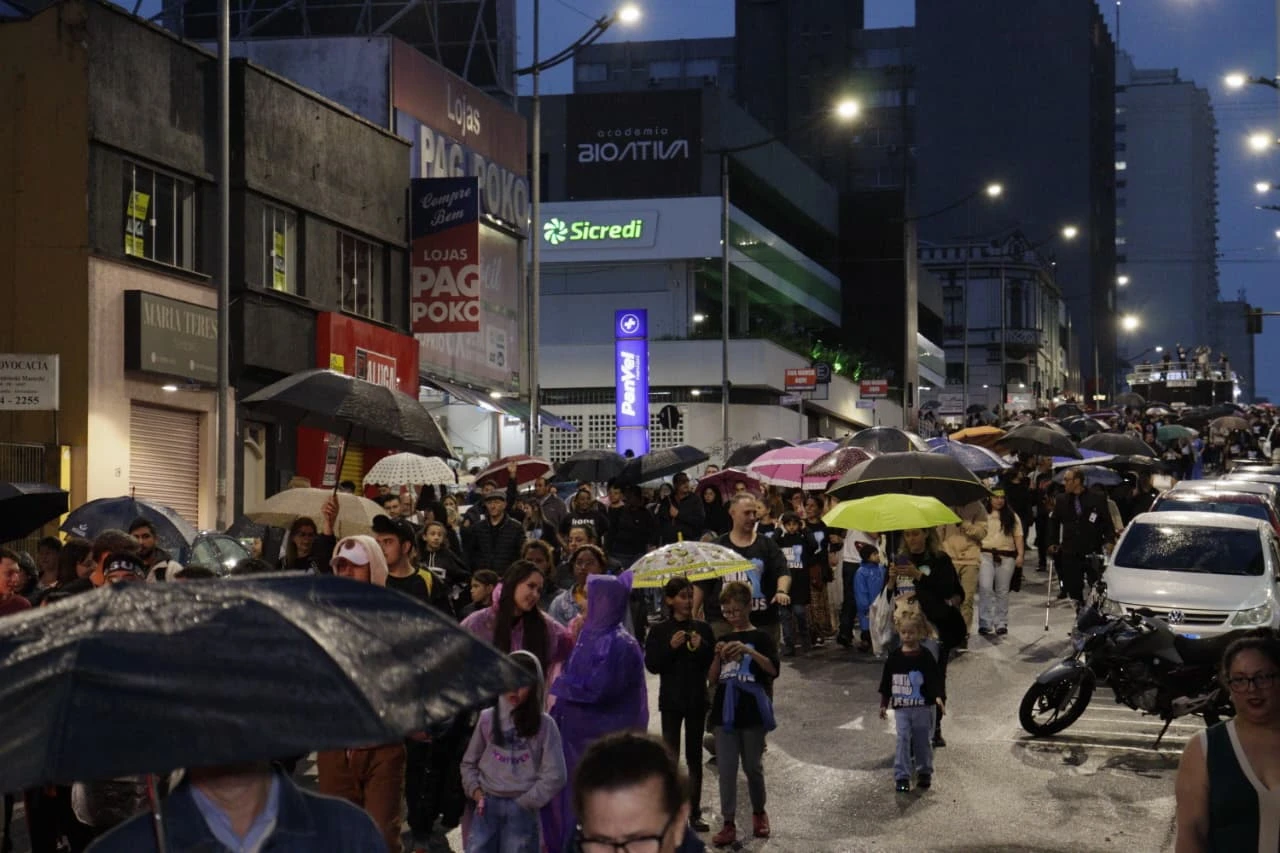 O evento contou com apoio da Equipe de Patrulhamento Viário de Trânsito, garantindo segurança ao longo do percurso, e reuniu famílias adorando, com gestos de fé com as mãos erguidas e filhos nas costas de pais e mães para acompanharem os momentos de louvor. A caminhada se estendeu pela Avenida Vicente Machado, na região central da cidade, proporcionando momentos de reflexão e comunhão entre os participantes.
