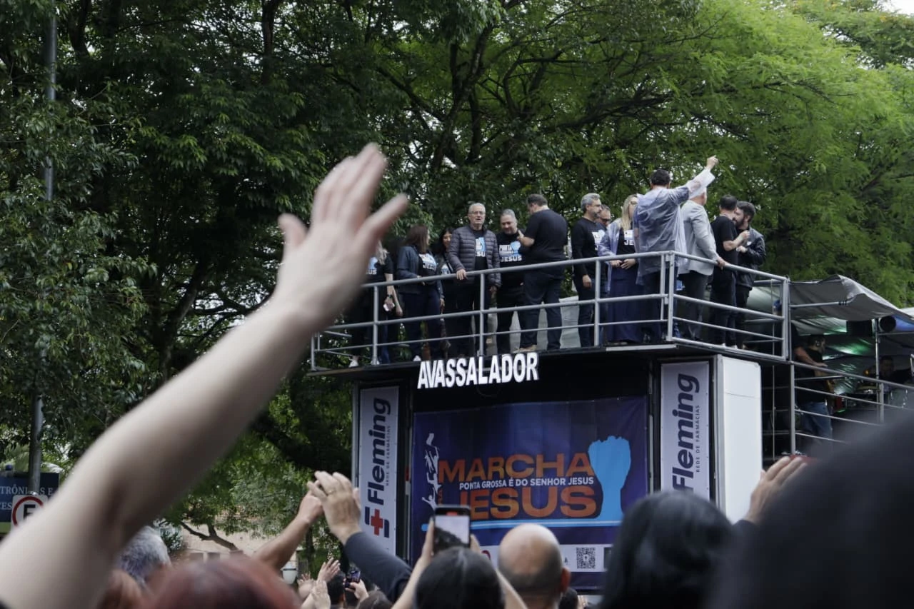 A Marcha para Jesus foi organizada por diversas lideranças evangélicas de Ponta Grossa e trouxe apresentações musicais, com a principal atração do evento sendo o cantor gospel Marcus Salles, que conduziu o louvor e emocionou os fiéis com suas canções.