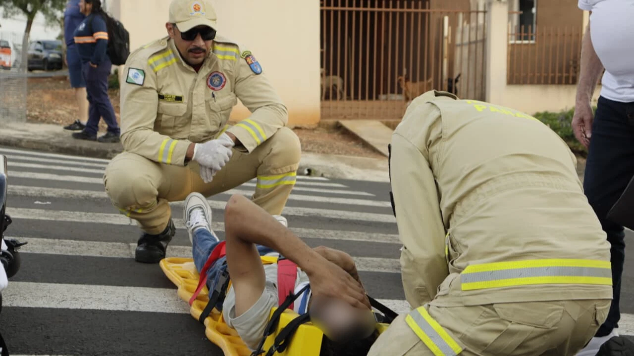 O motociclista, de 25 anos, sofreu suspeita de fratura na clavícula. Ele recebeu atendimento no local antes de ser encaminhado para avaliação médica. A garupa da moto não sofreu ferimentos.