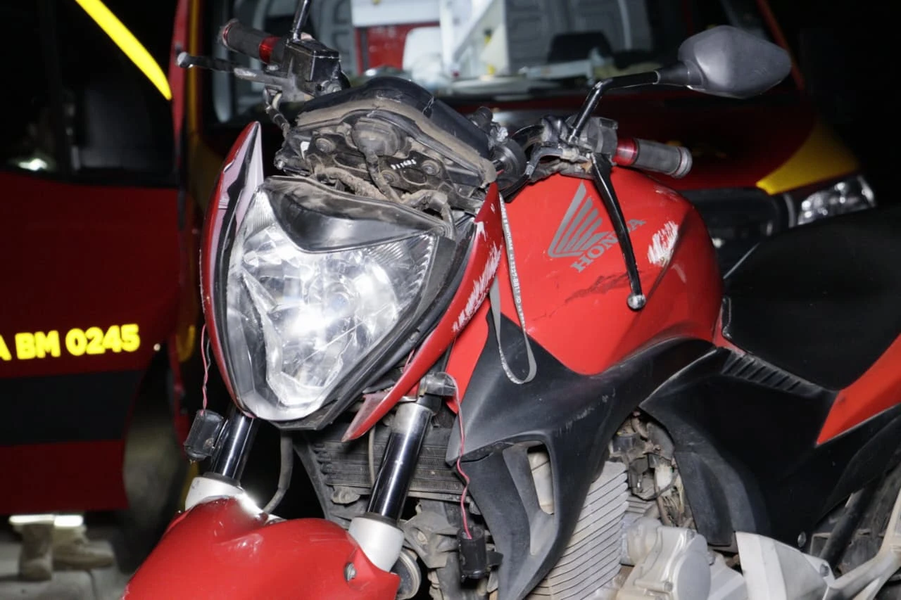 A equipe da Superintendência de Trânsito e Segurança Viária (STSV) também compareceu ao local. Moto não apresentava pendências e foi liberada para o condutor no local. Veículo teve avarias no painel e lataria.