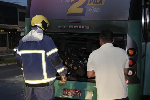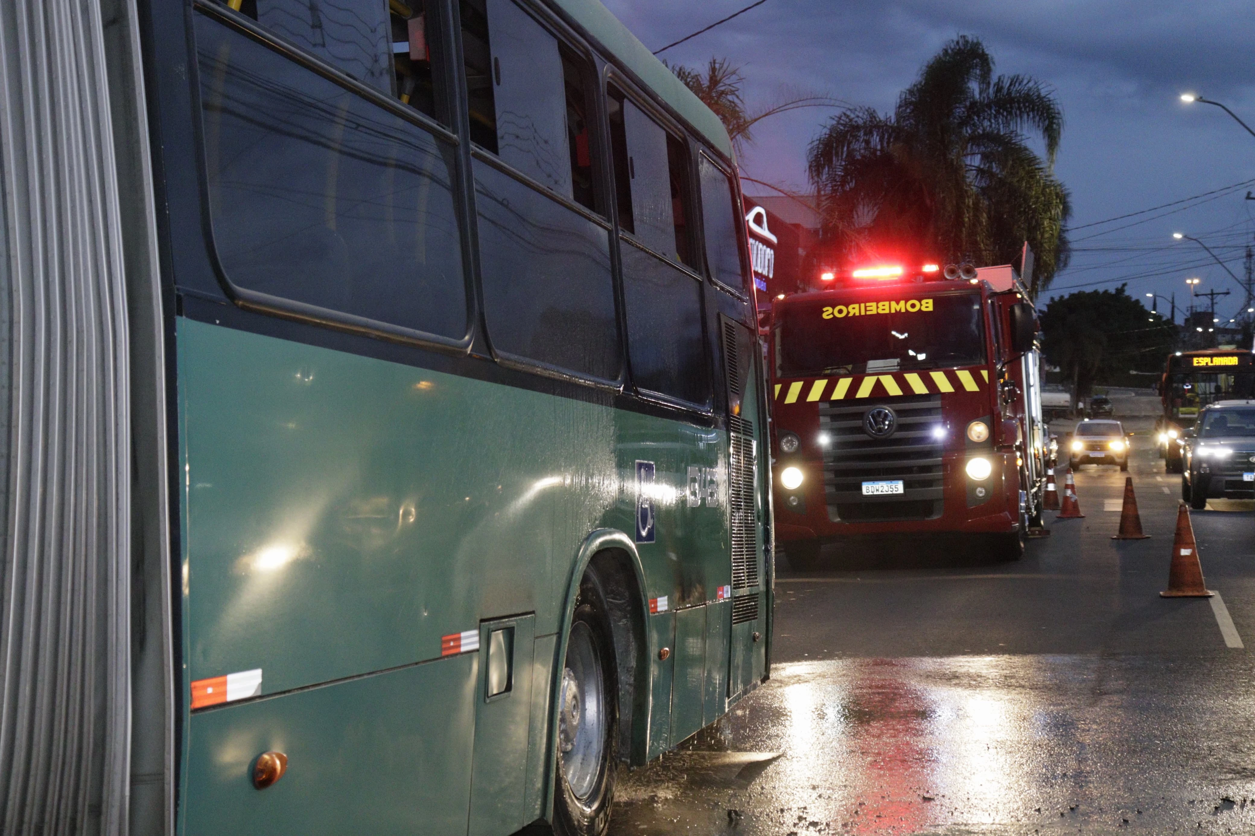 Imediatamente, o ônibus foi evacuado e começou um primeiro combate às chamas no motor do transporte. O motorista tentava apagar as chamas com a ajuda de um extintor, primeiramente. Outros motoristas também teriam parado no local para fazer o auxílio no combate, porém sem sucesso.