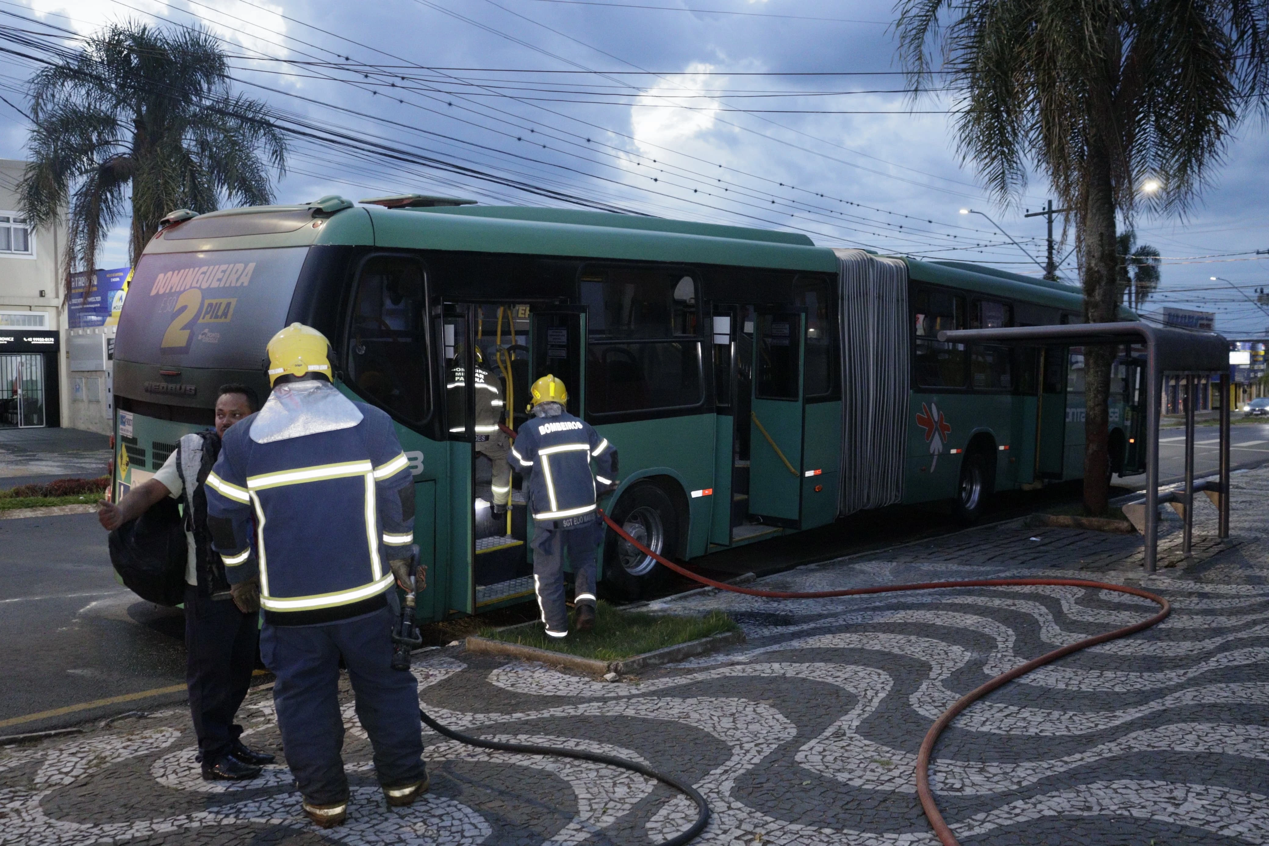 Um ônibus articulado de transporte coletivo da Viação Campos Gerais (VCG) pegou fogo na Avenida Ernesto Vilela, em Ponta Grossa, nesta quarta-feira (28). Informações preliminares levantadas pela equipe do D'Ponta News mostram que os primeiros sinais do incêndio começaram no motor do veículo.