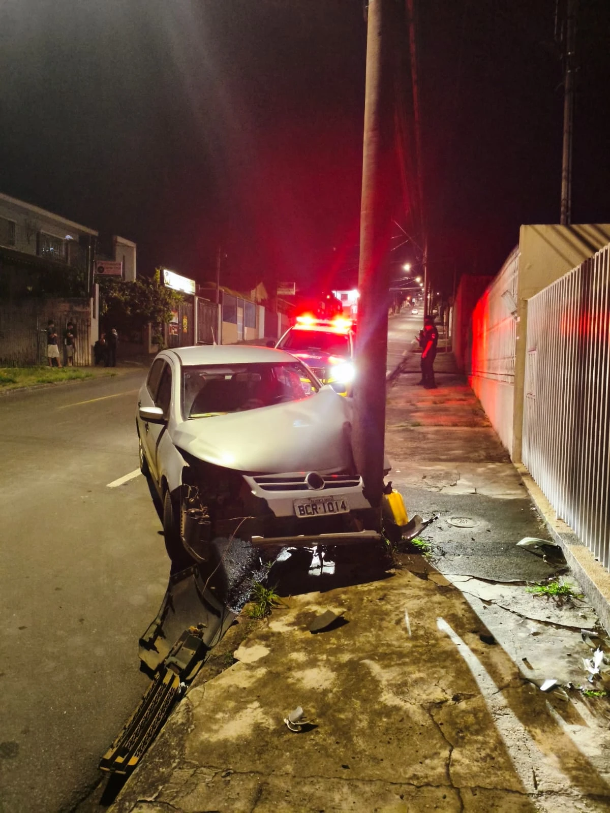 Um motorista perdeu o controle do veículo e colidiu contra um poste durante a madrugada de quinta-feira (8), na Rua Londrina, 809, bairro Nova Rússia, em Ponta Grossa. O condutor foi encaminhado à Unidade de Pronto Atendimento (UPA) da Santa Paula.