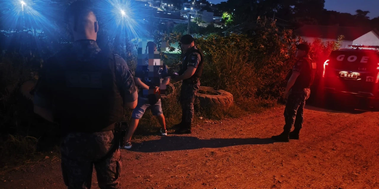 Com base nas informações repassadas, os agentes iniciaram acompanhamento e abordaram um dos envolvidos, de 19 anos, após ele tentar fugir pulando muros de residências.