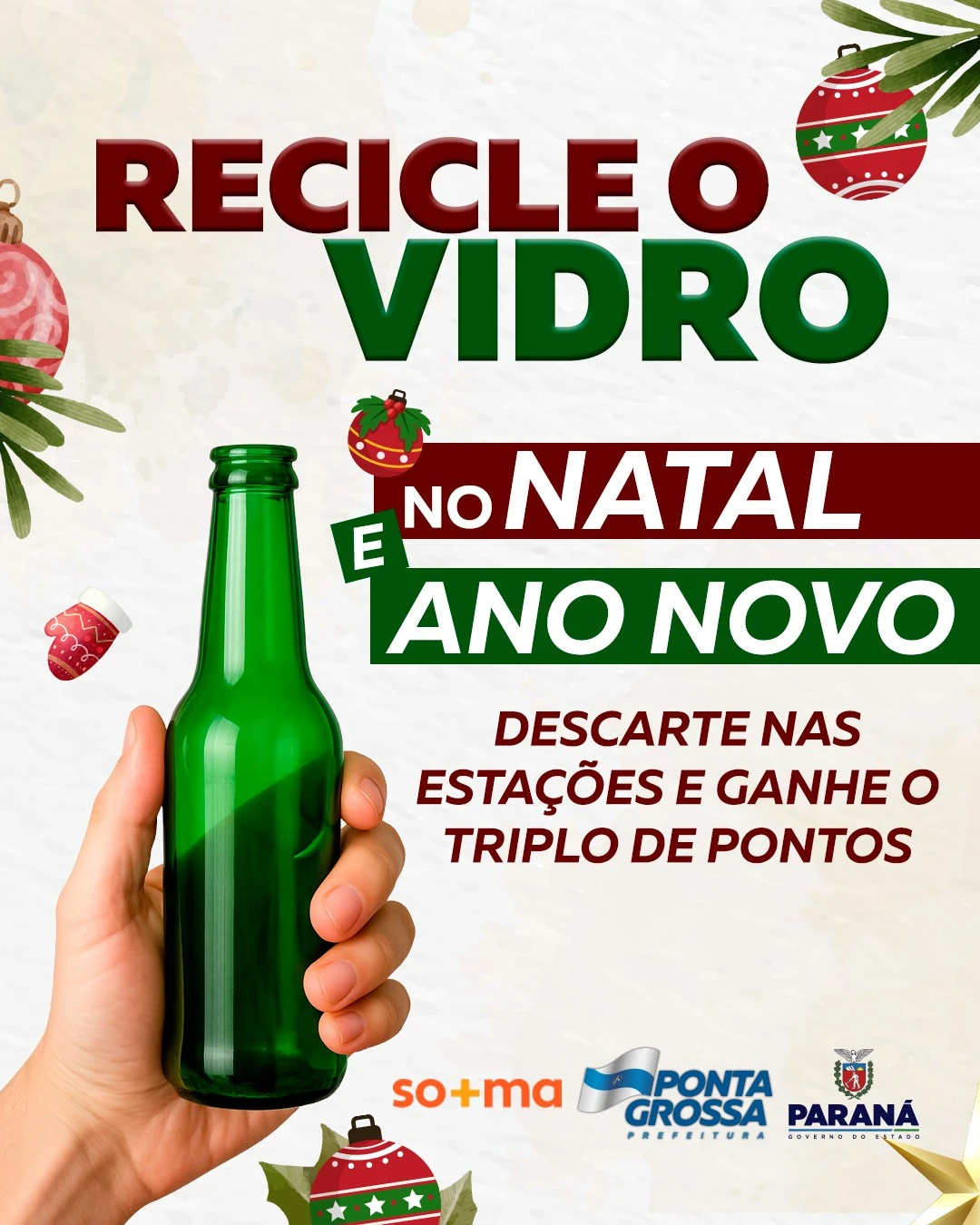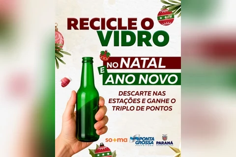 A Prefeitura Municipal de Ponta Grossa lançou uma campanha de reciclagem voltada ao descarte de materiais de vidro neste fim de ano. A campanha “Vidro Vale Triplo no Fim de Ano” vai até 10 de janeiro de 2026 e concederá o triplo dos pontos para a população que doar o material através do aplicativo Recicla PG.