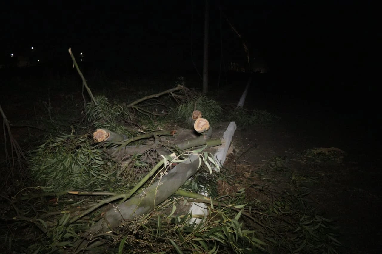 No local, foi constatado que grande parte da região no entorno da queda da árvore ficou sem energia elétrica, pois a rede de transmissão foi rompida por um grande galho de eucalipto. No entanto, a via não estava bloqueada, como informado no chamado, pois um morador já havia providenciado o corte da árvore e feito a limpeza da via para evitar acidentes.