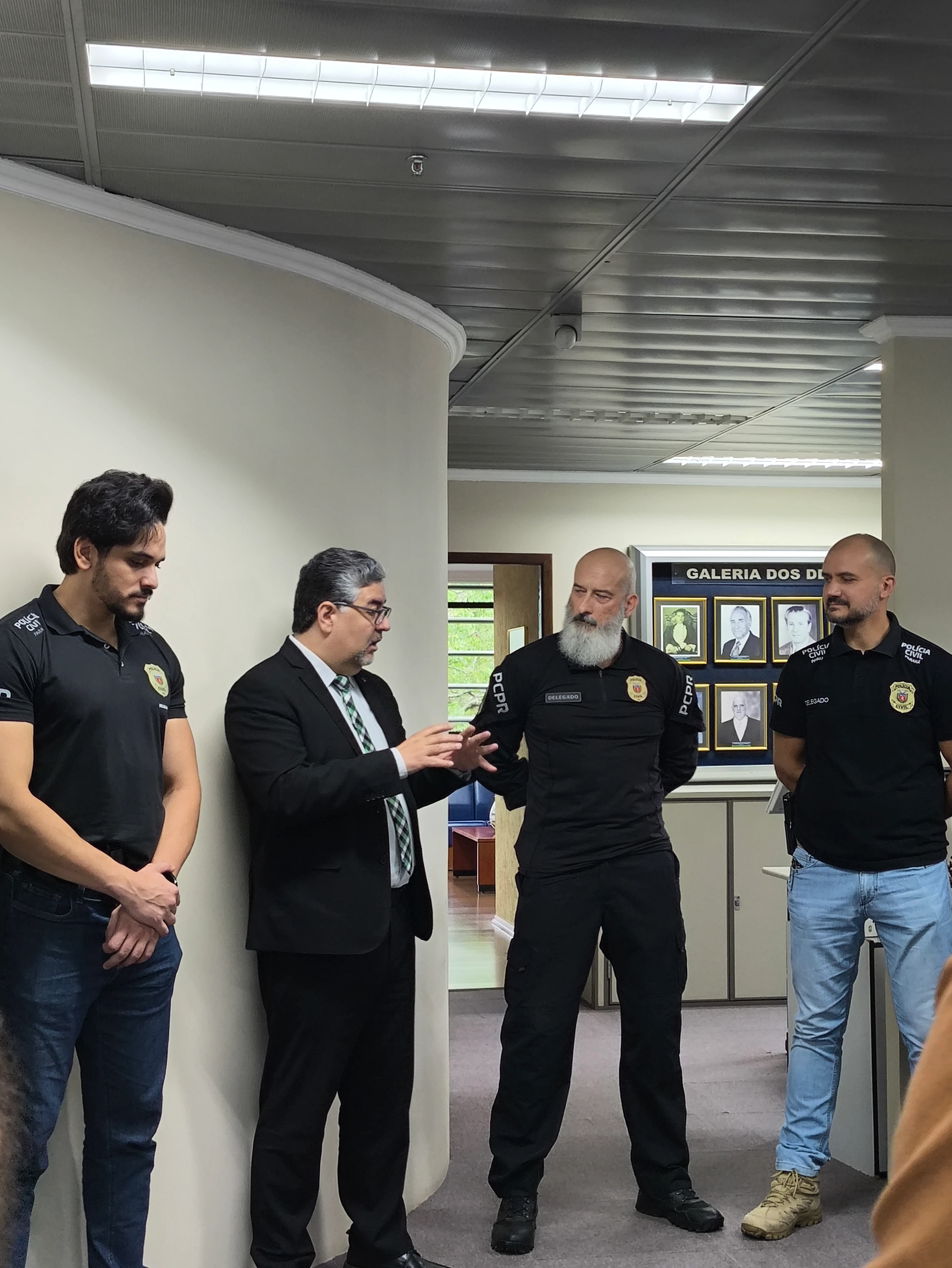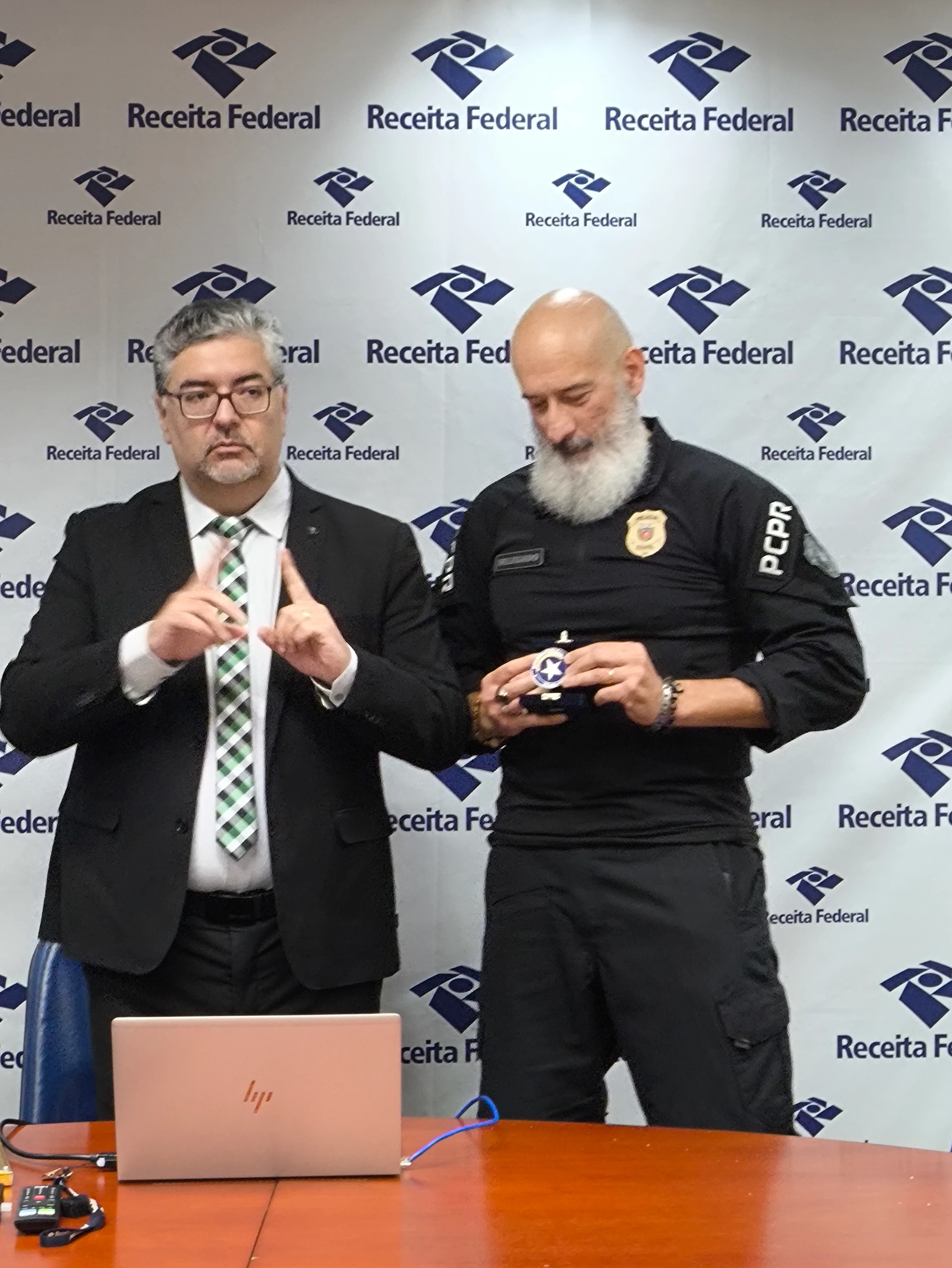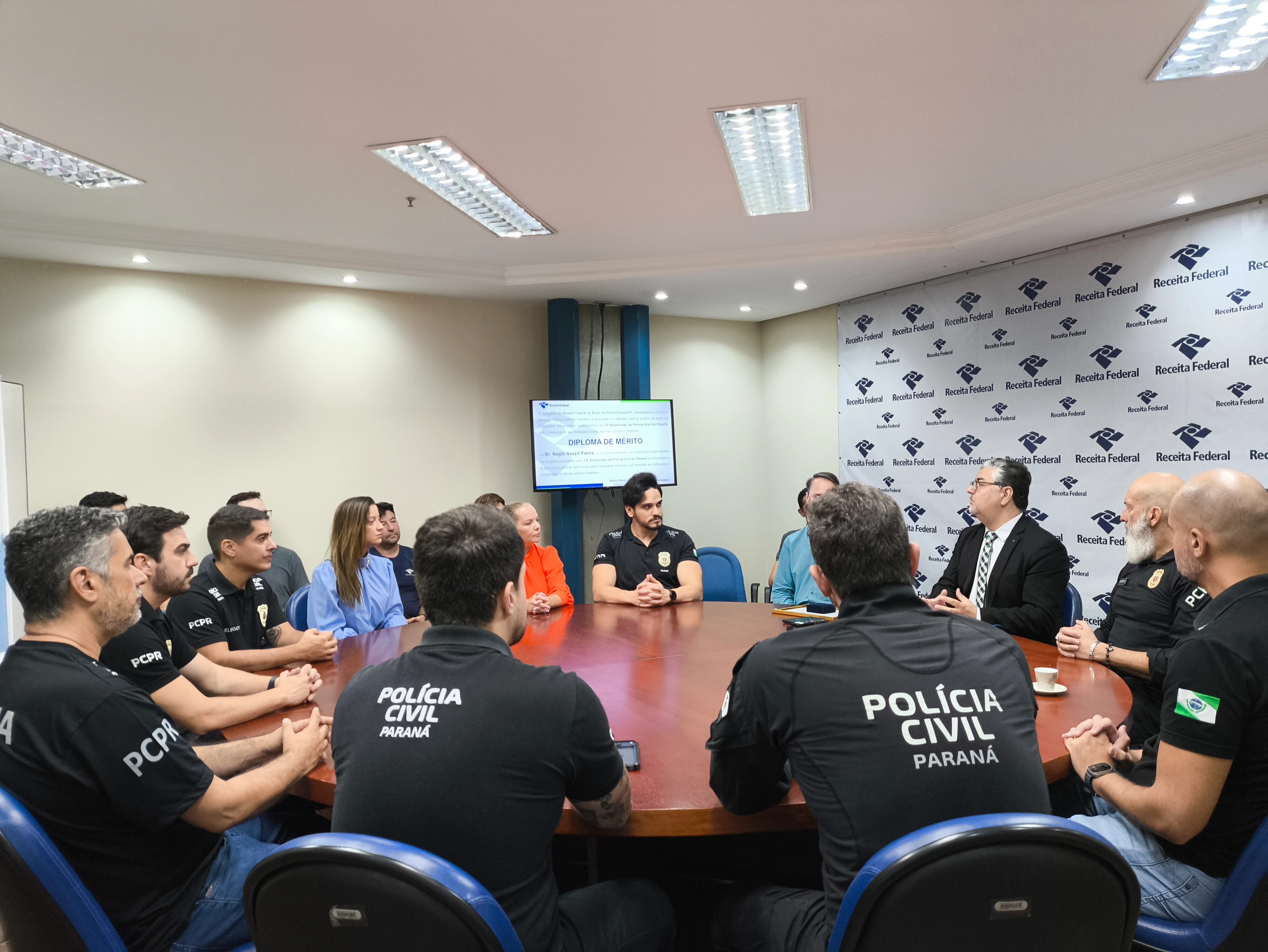 Na ocasião, o Delegado da Receita Federal em Ponta Grossa, Auditor-Fiscal Remy Deiab Junior, acompanhado de Auditores-Fiscais, Analistas Tributários e servidores administrativos, rendeu honrosa homenagem à 13ª Subdivisão da Polícia Civil do Paraná, destacando que a parceria entre as instituições tem se consolidado como um exemplo de cooperação interinstitucional, pautada pelo respeito mútuo, pela eficiência e pelo compromisso com os valores constitucionais e legais.