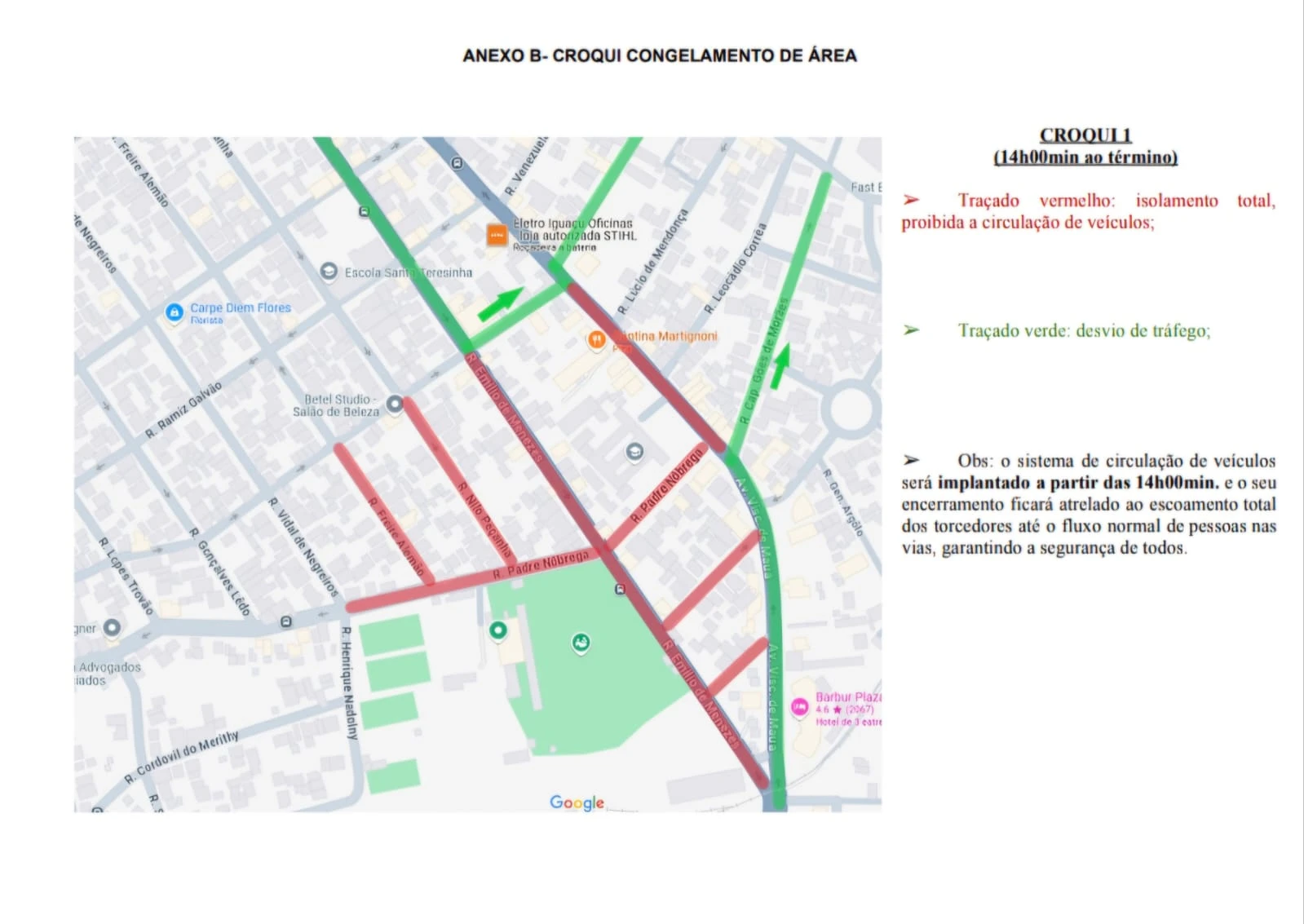 Após o término da partida, o escoamento da torcida será feito de forma gradual, com orientação da Polícia Militar, garantindo a segurança e a ordem pública. A população é orientada a se programar com antecedência para seus deslocamentos.