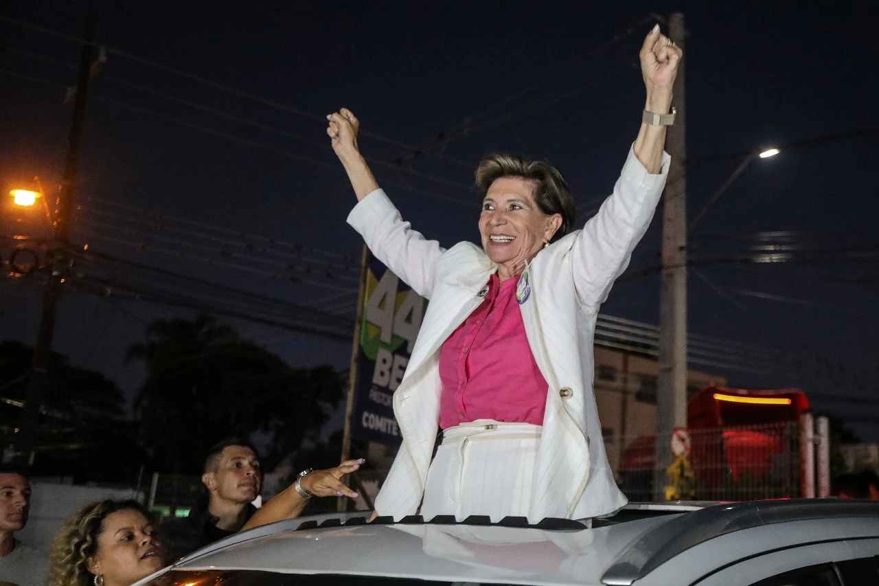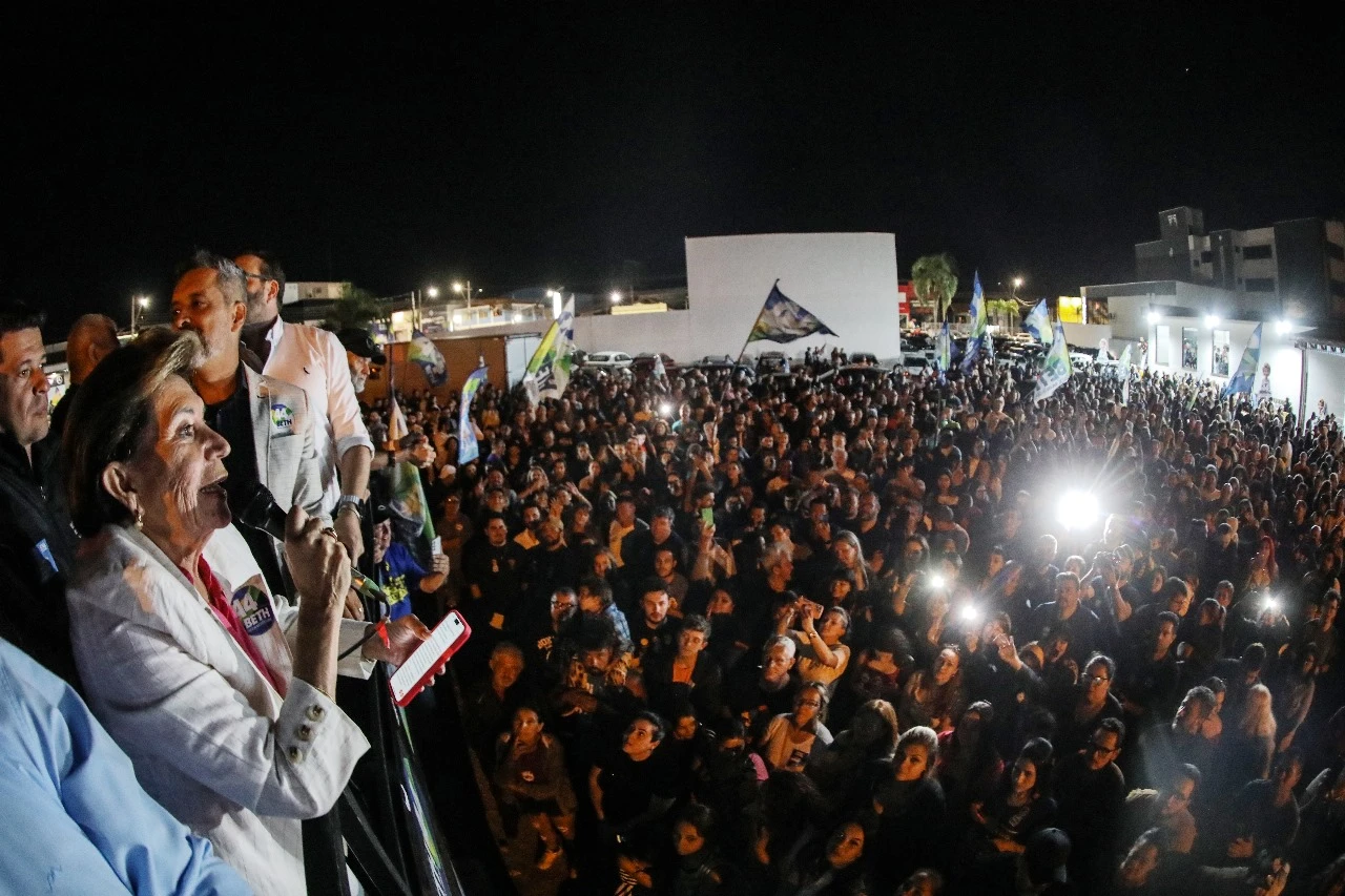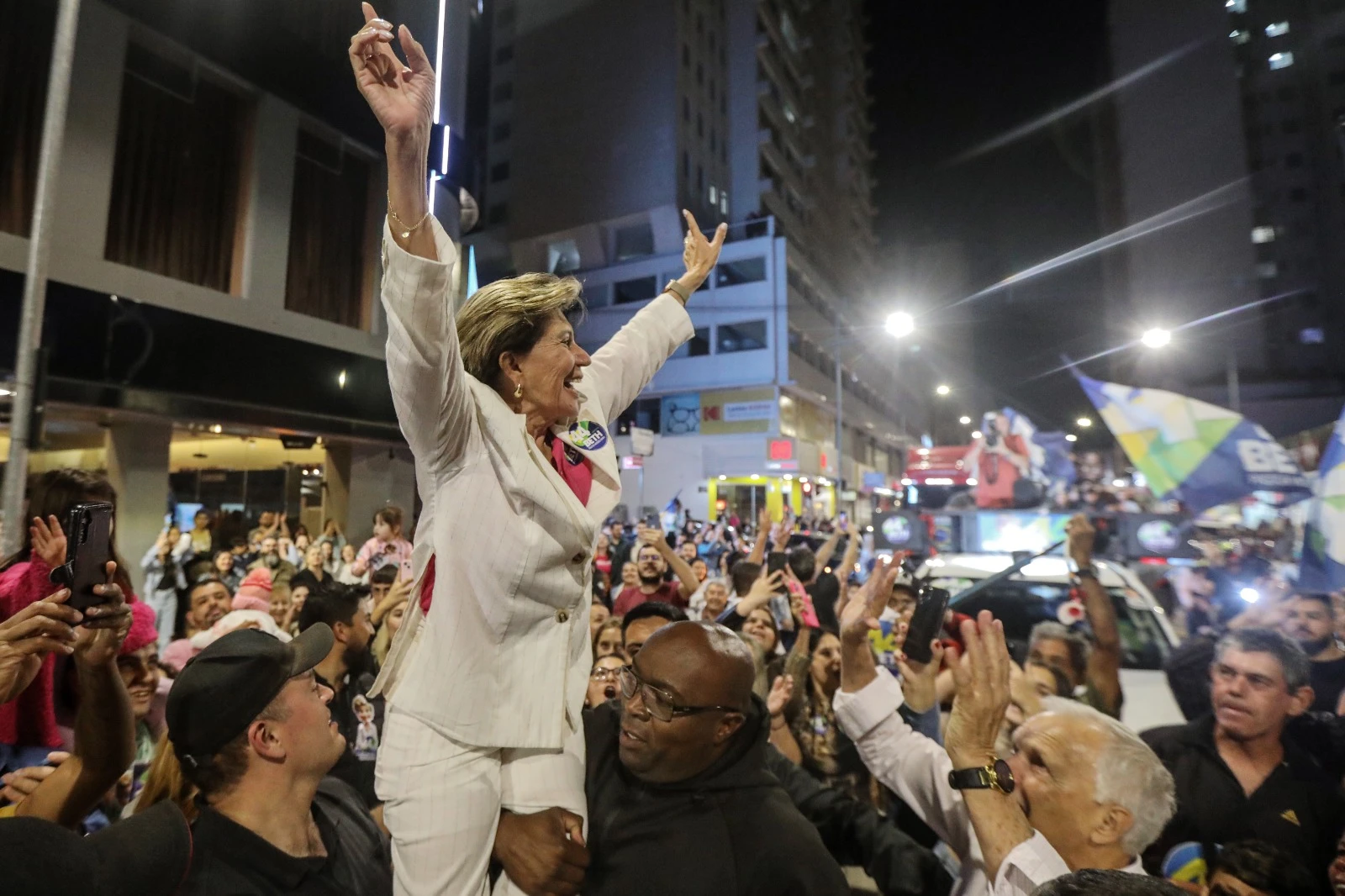 Após a vitória na eleição desse domingo (27), com 96.407 votos, equivalente a 53,72% do total, a prefeita Elizabeth Schmidt (União) se reuniu com apoiadores para comemoração no comitê central da sua campanha, no bairro Nova Rússia.
