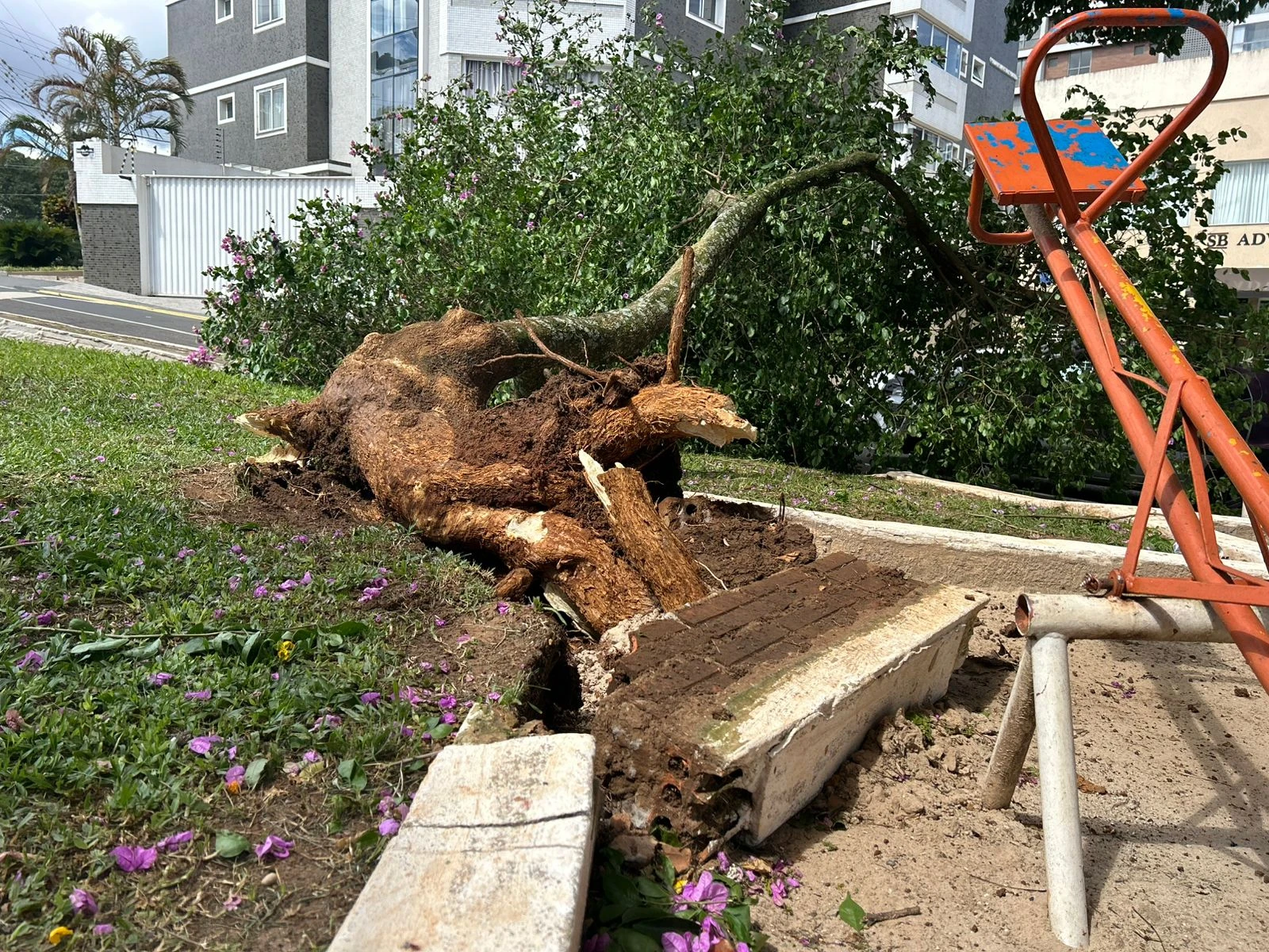 A equipe do D'Ponta News foi às ruas acompanhar de perto o trabalho de manejo e poda de árvores em locais afetados. Além da Rua Ataulfo Alves, onde o Corpo de Bombeiros esteve em atendimento, nossa reportagem registrou trabalhos também na Praça Margarida Malucelli Moro, indicando a amplitude dos danos causados pelo temporal na cidade.