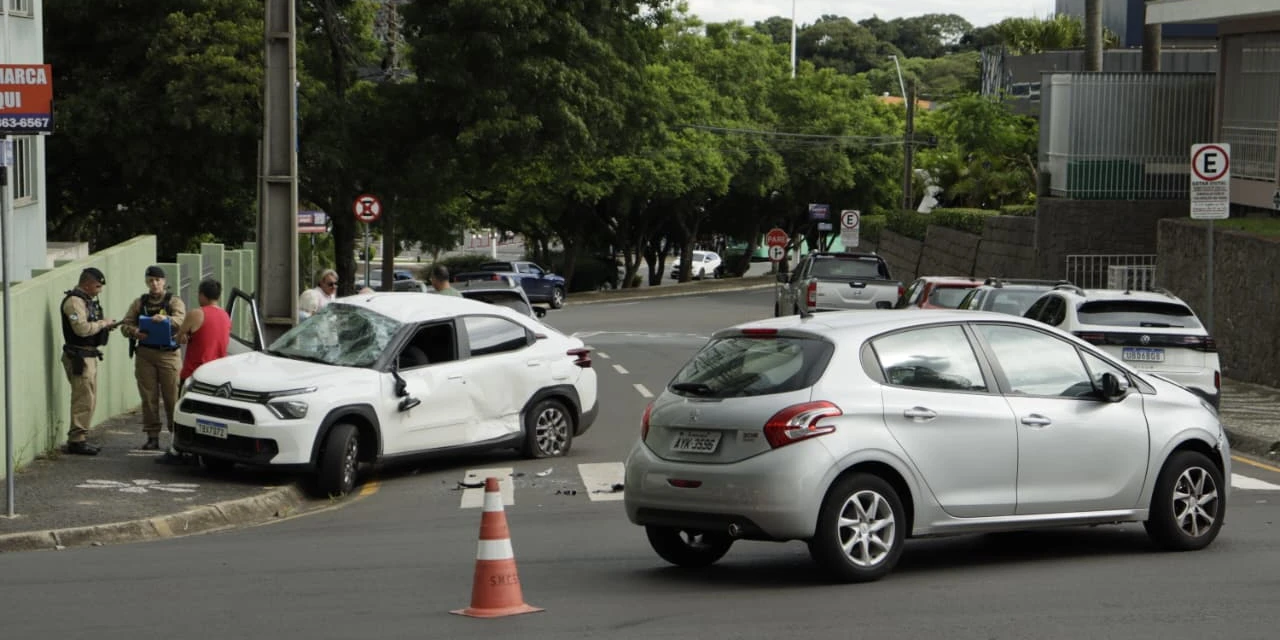 Um acidente envolvendo um Peugeot 208 e um Citroën Basalt foi flagrado por câmeras de segurança na tarde desta terça-feira (13), em Ponta Grossa. A colisão ocorreu no cruzamento das ruas Ricardo Lustosa Ribas e Coronel Dulcídio, na Vila Estrela, e deixou cinco pessoas com ferimentos leves.