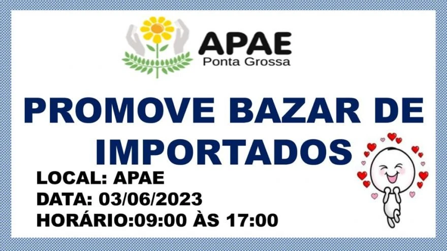 A Associação de Pais e Amigos dos Excepcionais de Ponta Grossa (Apae-PG) promove, no dia 3 de junho, um bazar de produtos importados em prol da instituição.