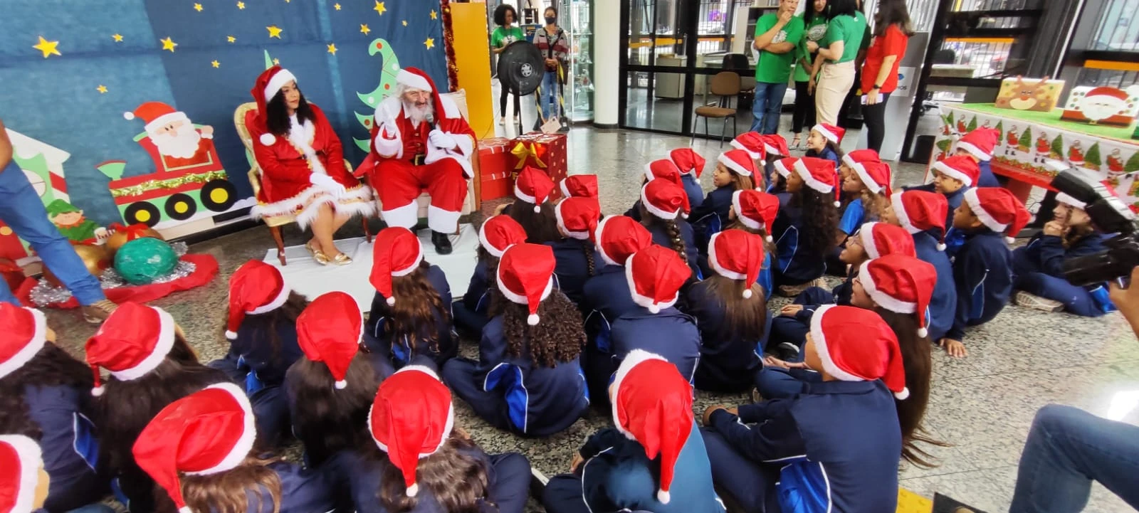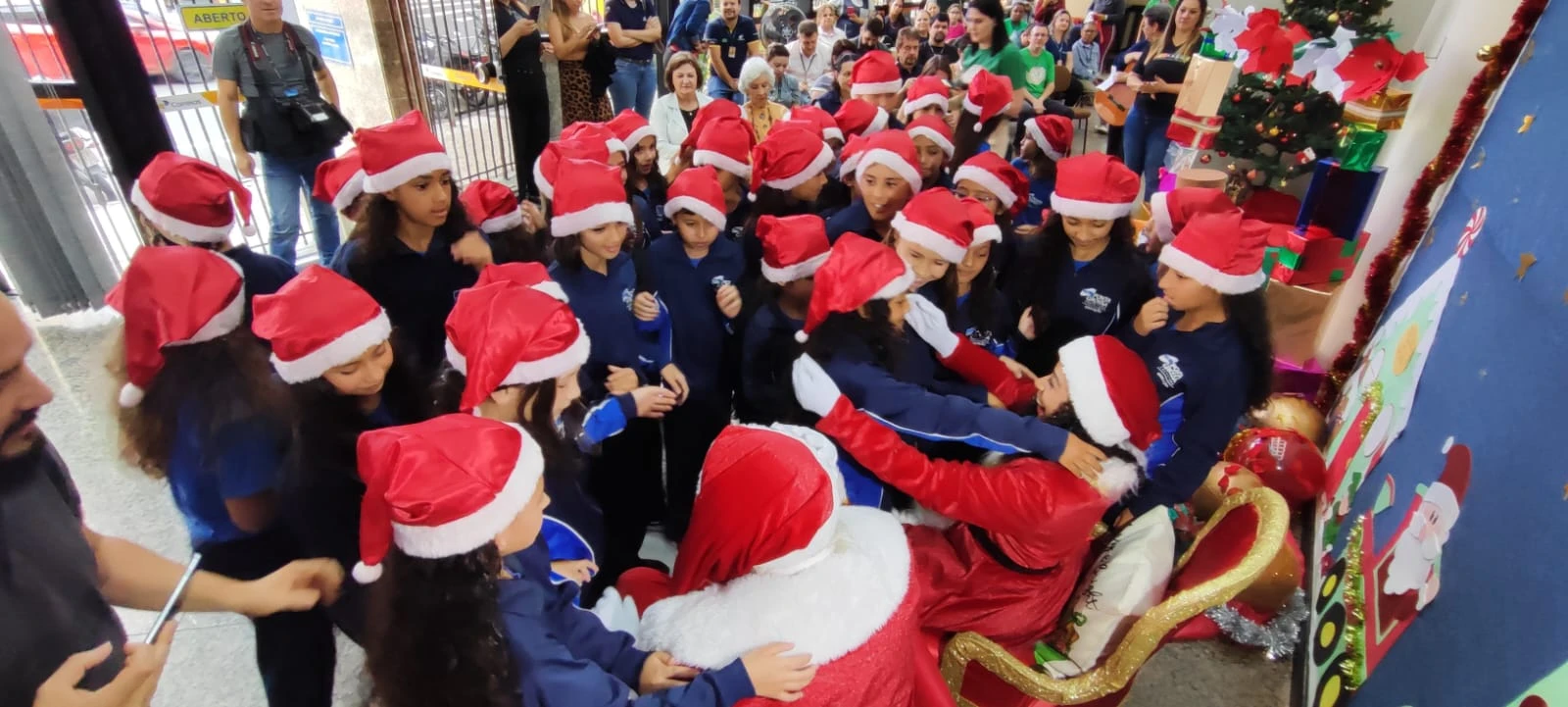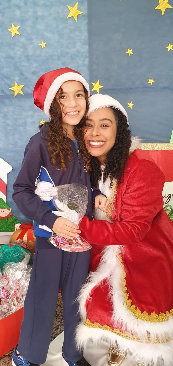 O coral de alunos da Escola Municipal Guaracy Paraná Vieira participou do evento cantando músicas natalinas e recepcionando o Papai e a Mamãe Noel. Simone Pereira Neves, gestora da Rede Municipal de Ensino, destacou a importância da ação. "Esta é mais uma forma da comunidade participar da vida de nossas crianças, demonstrando seu carinho e cuidado, ajudando na criação de boas memórias que serão extremamente relevantes para um crescimento feliz e uma vida adulta saudável para todas elas", considera a secretária de Educação.