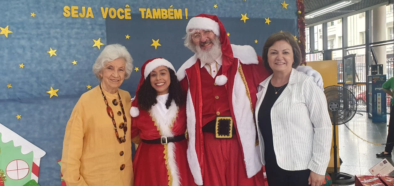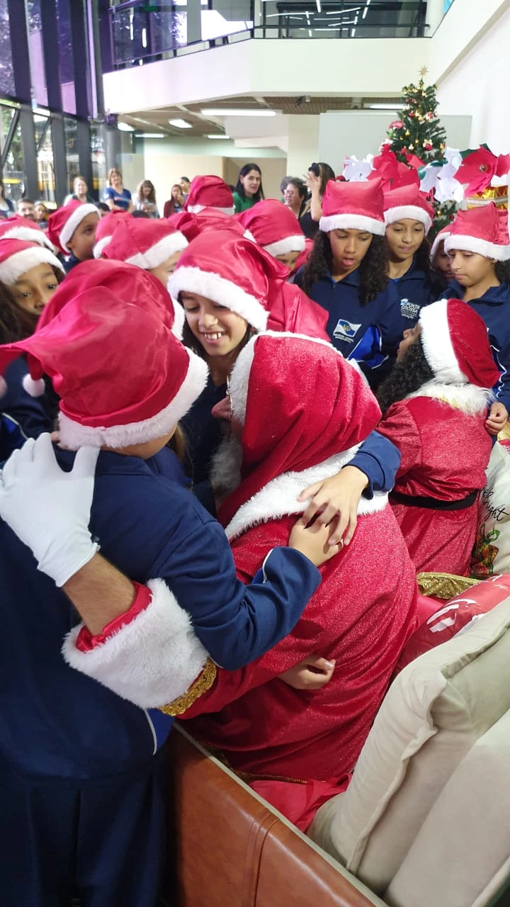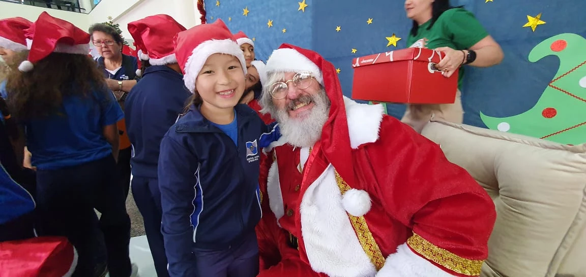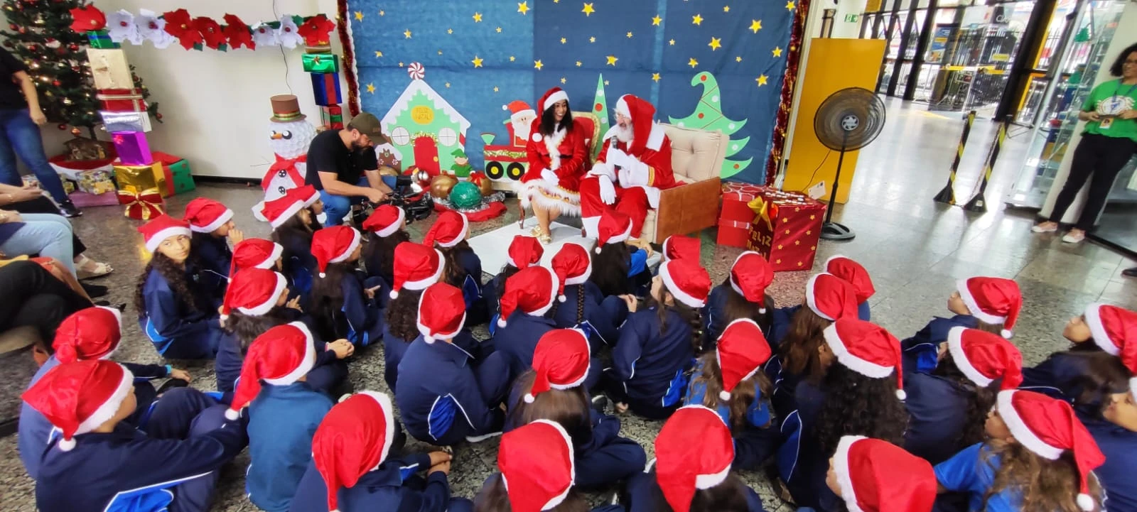 O coral de alunos da Escola Municipal Guaracy Paraná Vieira participou do evento cantando músicas natalinas e recepcionando o Papai e a Mamãe Noel. Simone Pereira Neves, gestora da Rede Municipal de Ensino, destacou a importância da ação. "Esta é mais uma forma da comunidade participar da vida de nossas crianças, demonstrando seu carinho e cuidado, ajudando na criação de boas memórias que serão extremamente relevantes para um crescimento feliz e uma vida adulta saudável para todas elas", considera a secretária de Educação.