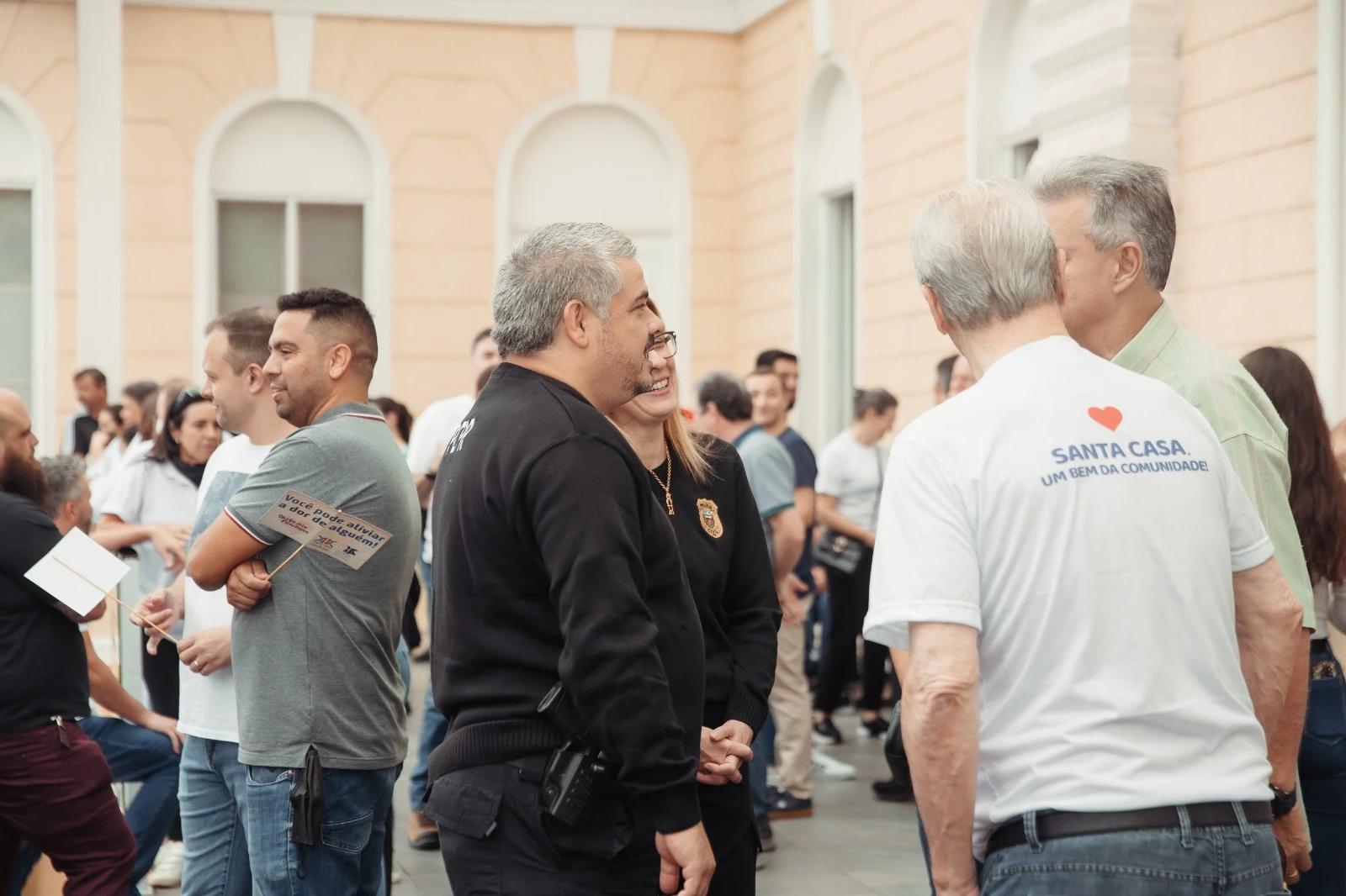 Aproximadamente 300 pessoas estiveram presente no evento que marca as ações da Campanha Unidos Pela Filantropia. O abraço contou com o apoio de toda a comunidade, o Diretor Técnico da Santa Casa, Dr Rogério Clemente, frisa a importância do apoio da sociedade. “Custear as despesas operacionais do hospital têm exigido um grande esforço de todos, pois a Santa Casa atende 1000 mil pessoas por dia, e, constantemente precisa buscar apoio da população para se manter em atividade. Para garantir o custeio do hospital, nós estamos sempre inovando e buscando alternativas que resolvam definitivamente esse problema".