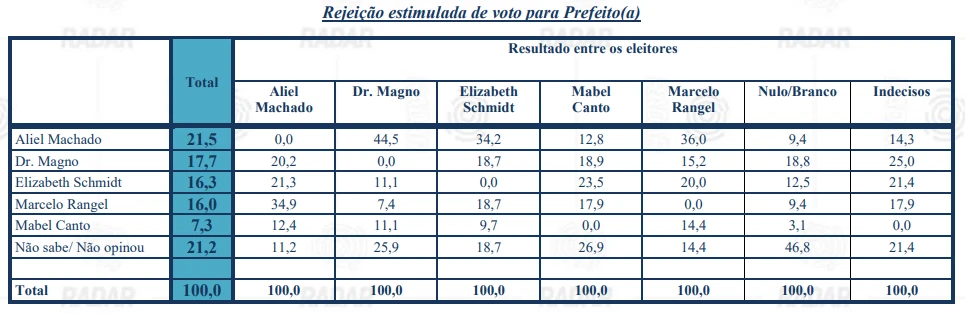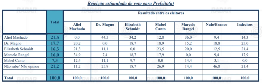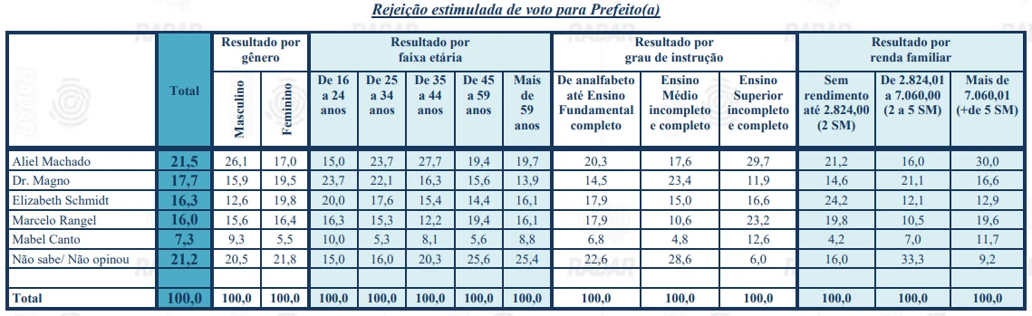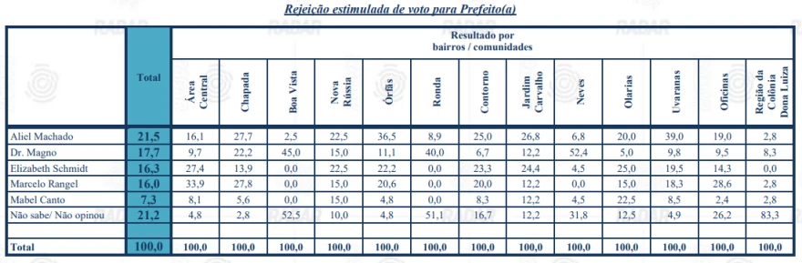 A rejeição dos candidatos nas regiões de Ponta Grossa também foi especificada. Veja: