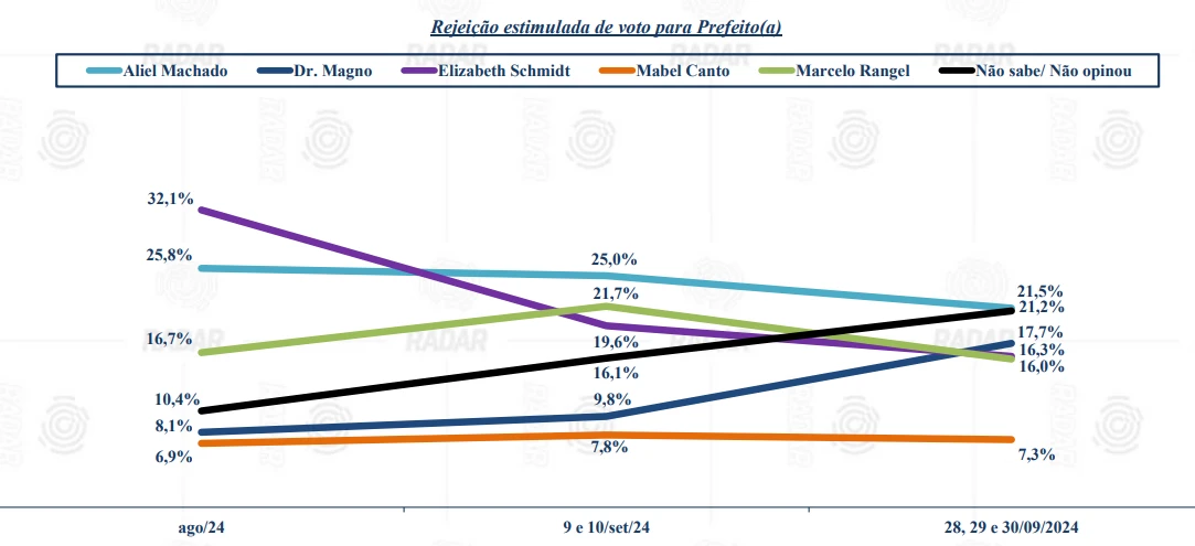 A pesquisa realizada pelo instituto Radar Inteligência Ltda foi feita nos dias 28, 29 e 30 de setembro de 2024. O estudo, contratado pelo D’Ponta Mídias e Consultoria Ltda/Grupo D’Ponta com recursos próprios, entrevistou 600 eleitores. A margem de erro é de 4,0 pontos percentuais para mais ou para menos e o intervalo de confiança é de 95%. A pesquisa está registrada sob o número PR-00009/2024.