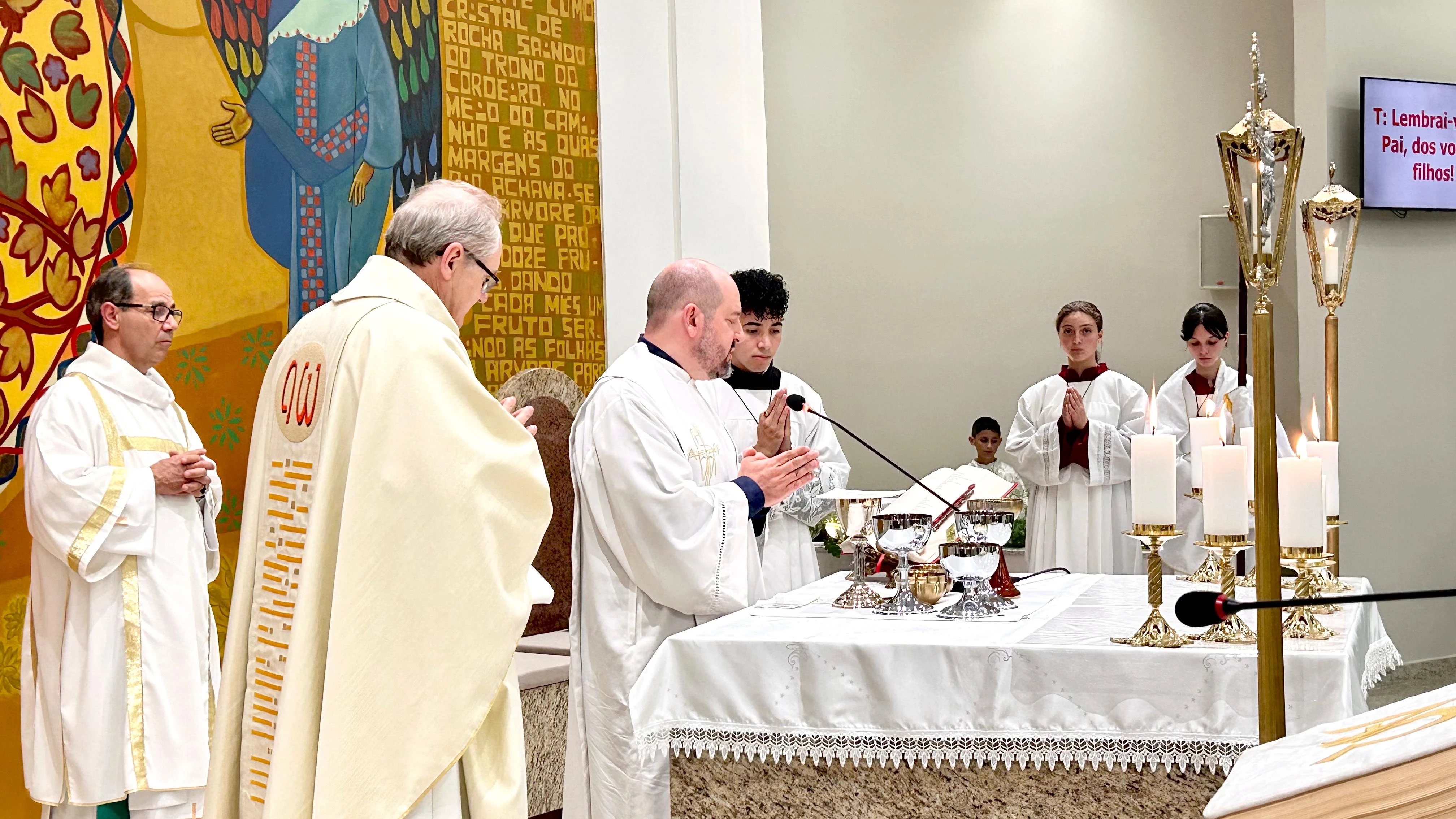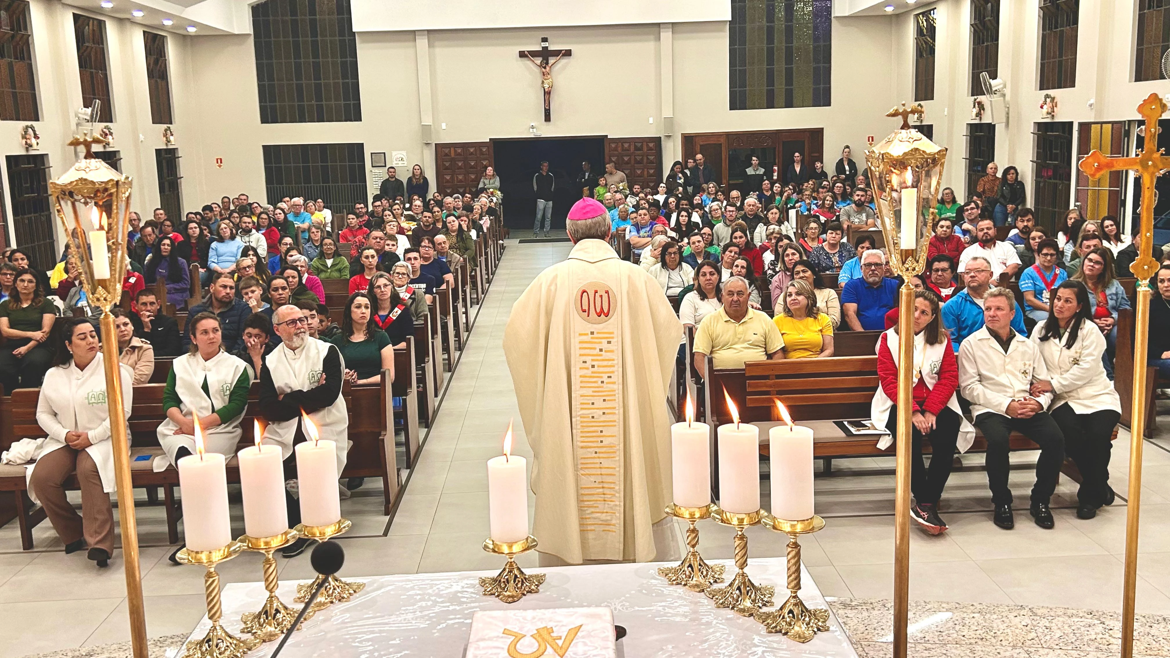 O bispo Dom Bruno Elizeu Versari aproveitou a celebração solene do aniversário de um ano da dedicação da igreja e do altar para conhecer a comunidade da Paróquia Nossa Senhora do Pilar, no Bairro da Palmeirinha, em Ponta Grossa. A festa da padroeira começou no dia 5 e segue até domingo (13), com missas e bênçãos especiais. Nesta sexta-feira, às 19 horas, será celebrada missa em honra a São João XXIII, que tem relíquias depositadas no altar da nova matriz. Amanhã, a única missa do dia acontecerá às 9h30 e vai festejar a padroeira do Brasil, Nossa Senhora Aparecida.