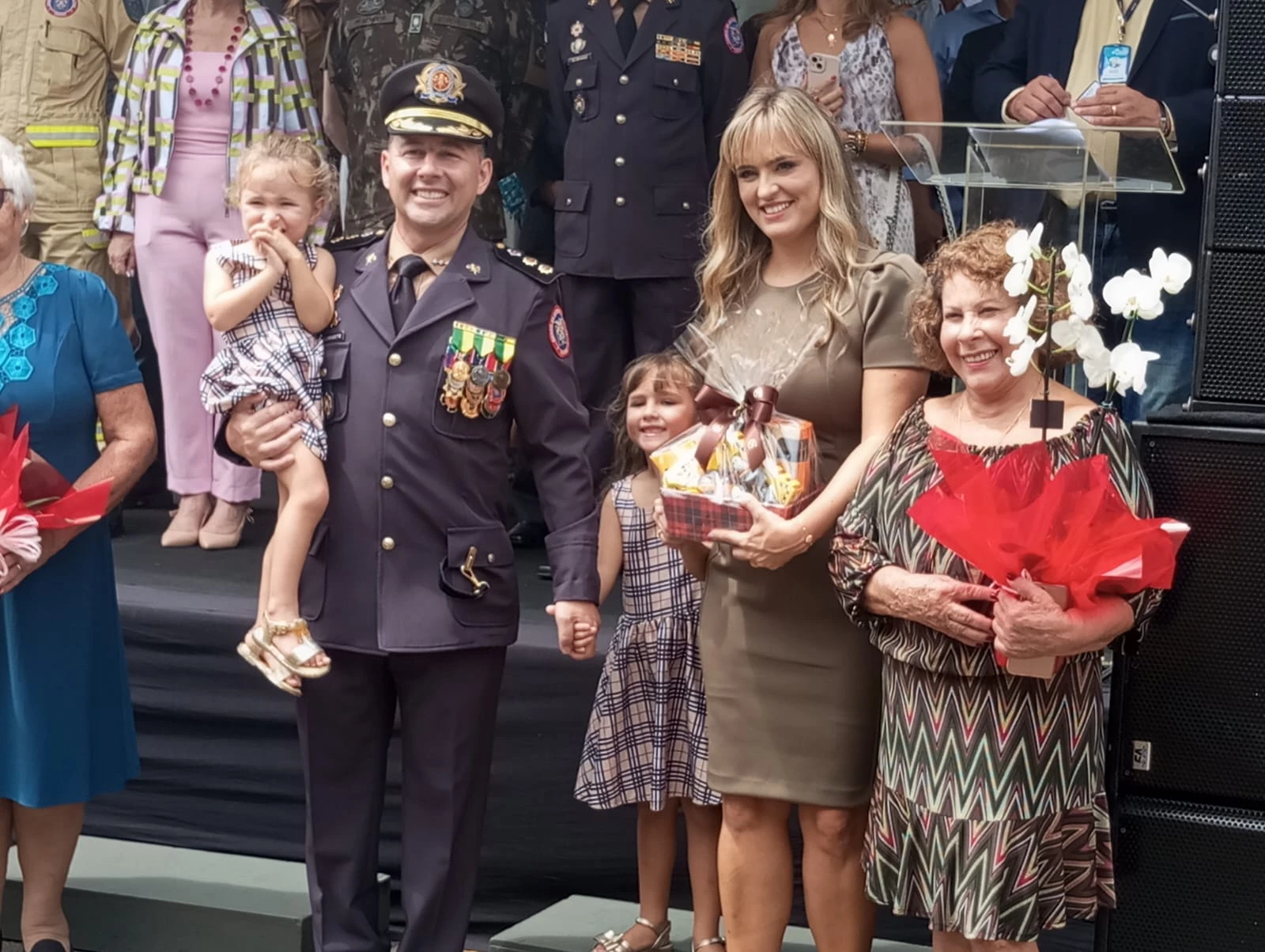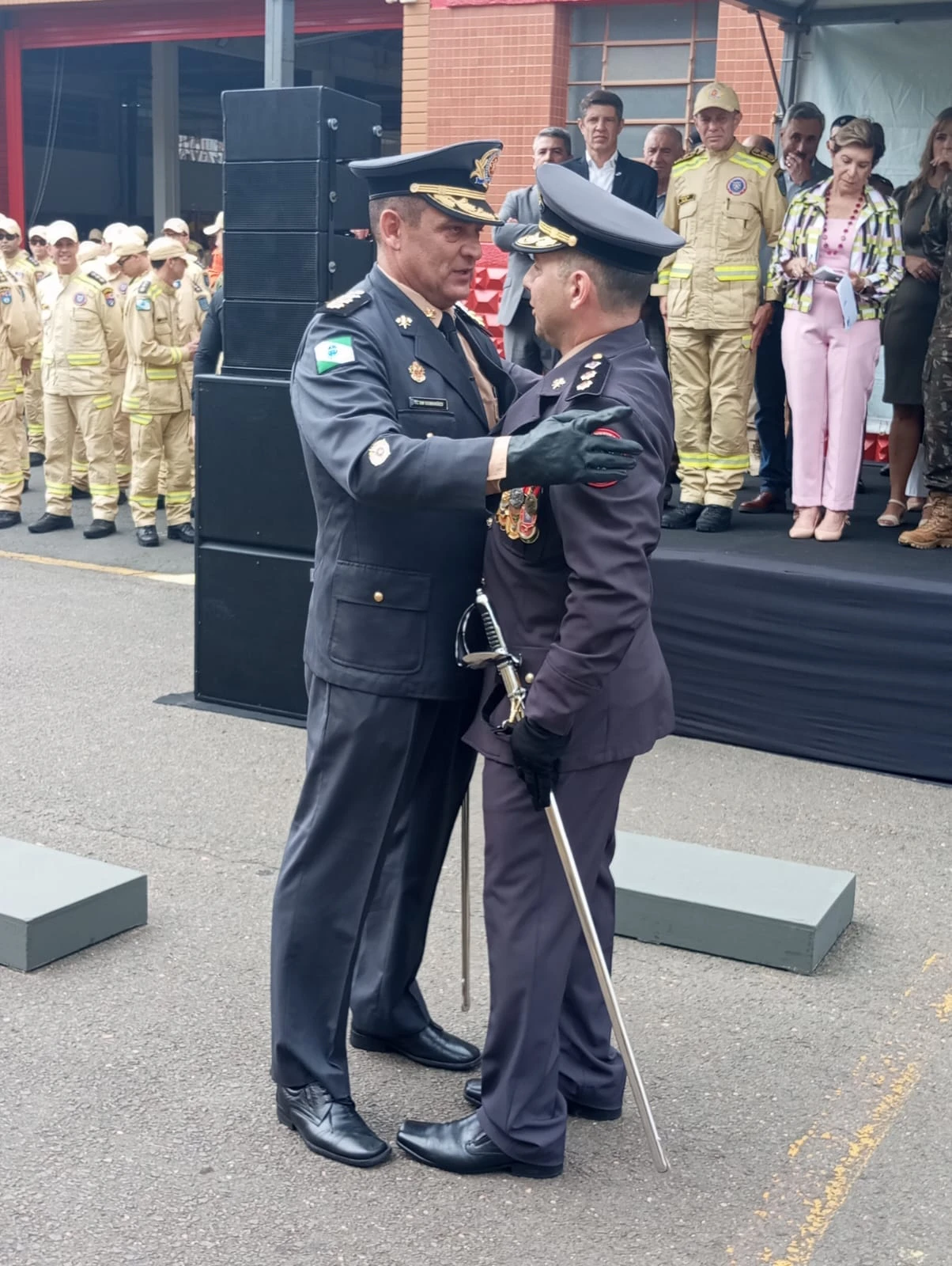 Tenente-Coronel Guimarães deixa o cargo após um ano à frente das atividades desenvolvidas pelo 2º GB nos 18 municípios que compreendem a sua área de atuação. A cerimônia ocorreu na sede do 2º GB e contou com a presença da prefeita Elizabeth Schmidt, do vice-prefeito Capitão Saulo, autoridades do Corpo de Bombeiros, do Exército, entre outras.