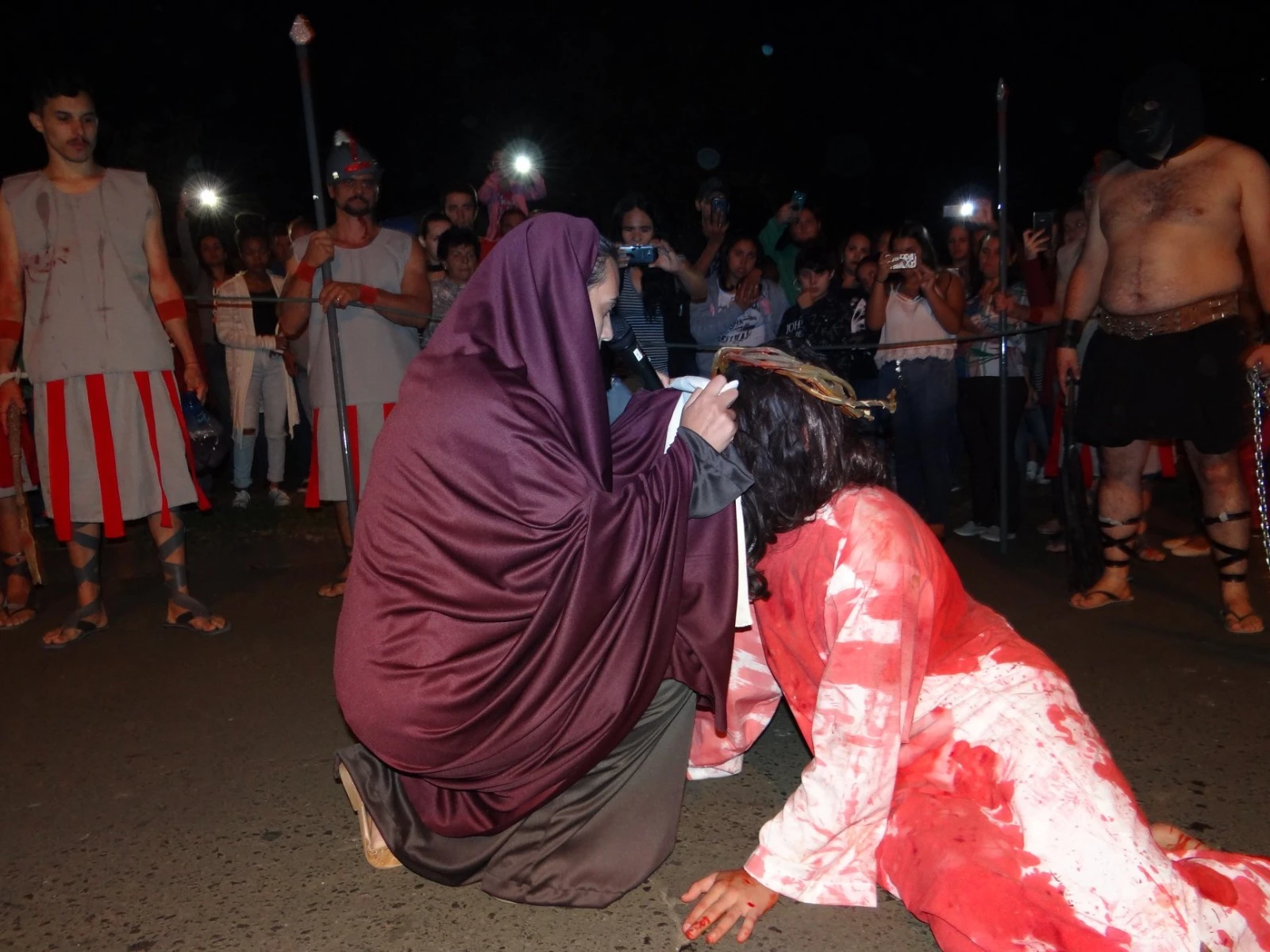 "São 44 anos de encenação aqui na nossa Paróquia. É a encenação mais tradicional que nós temos aqui na cidade e também na região dos Campos Gerais, segundo a diocese, é a encenação mais antiga. É maravilhoso, né? Só pelo fato de nós não deixarmos a história que Jesus passou por nós morrer. Eu fico muito feliz de não deixar essa história morrer, de nós levarmos adiante em forma de teatro. Não é tudo aquilo que Ele passou, mas representa pelo menos uma parte do que Ele viveu quando aqui passou e passou por cada um de nós", diz Renan.