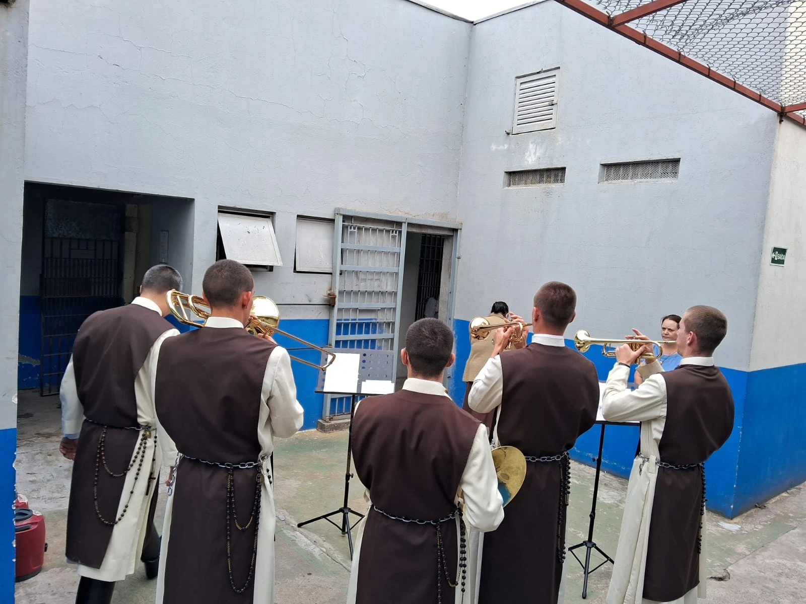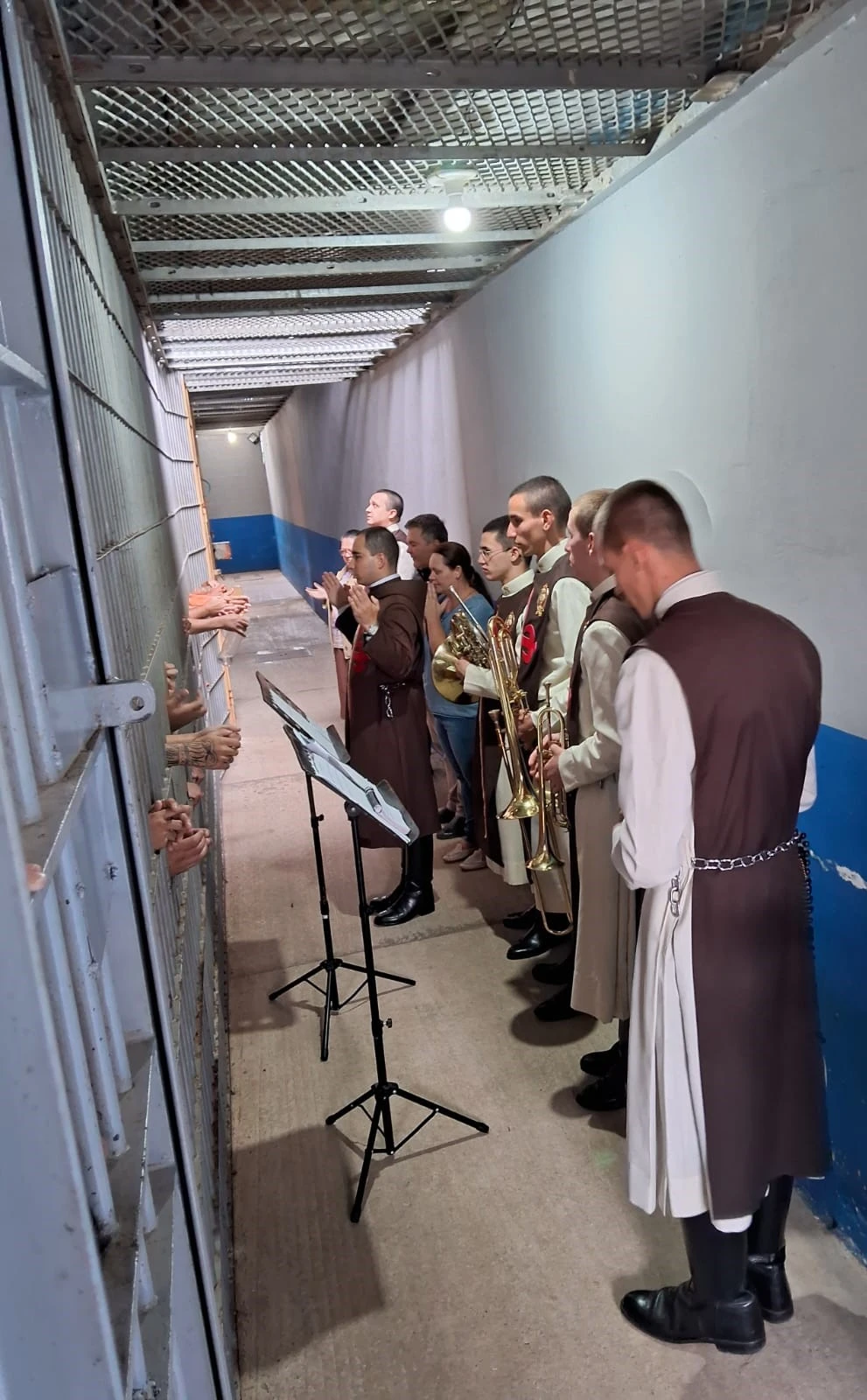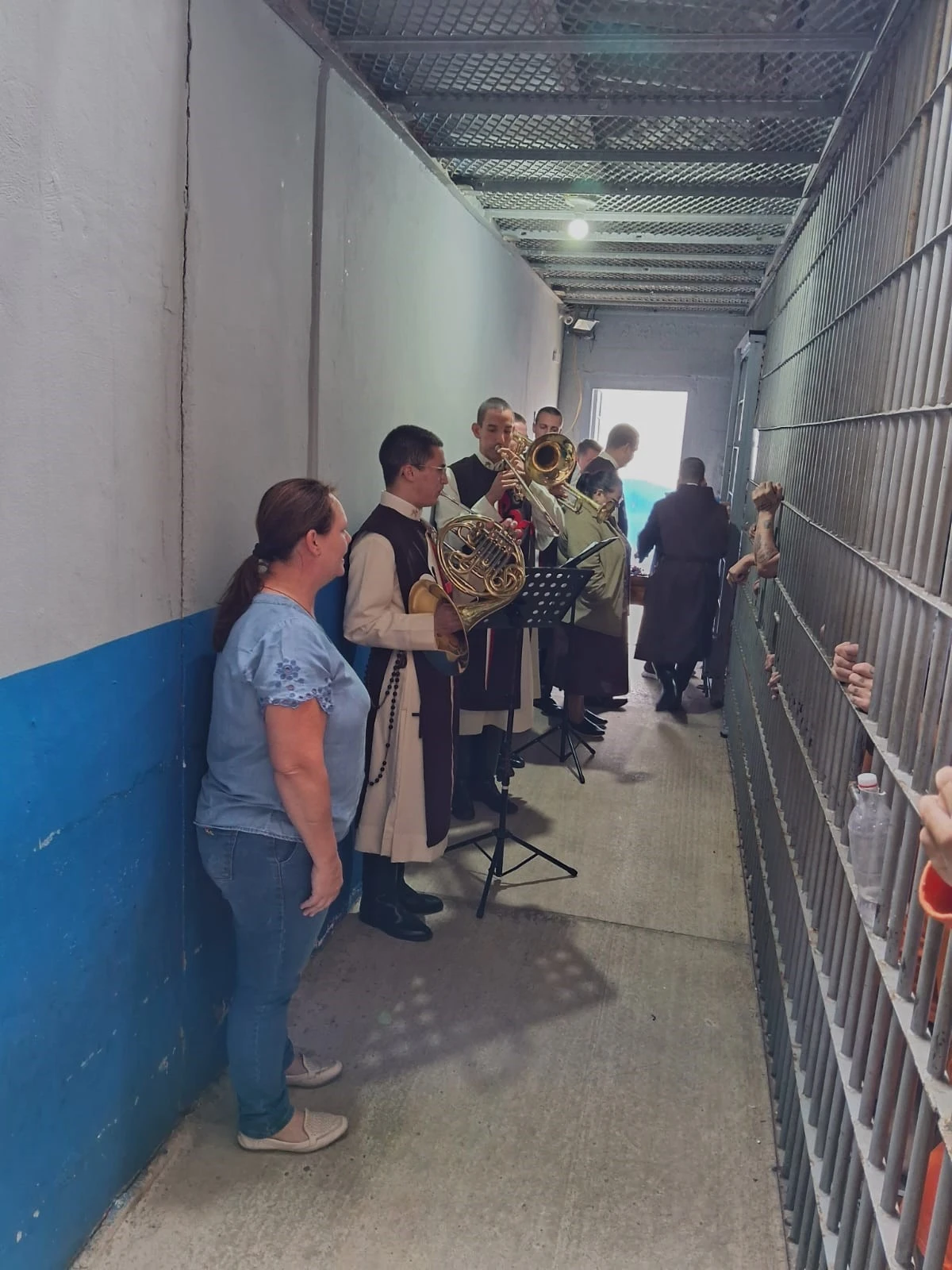 Nas galerias do presídio, a ação envolveu 720 apenados que receberam orações, música e chocolate, segundo a Diocese de Ponta Grossa. Veja as fotos: